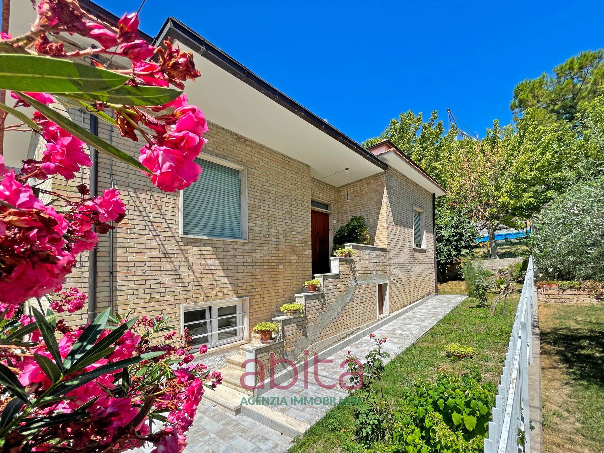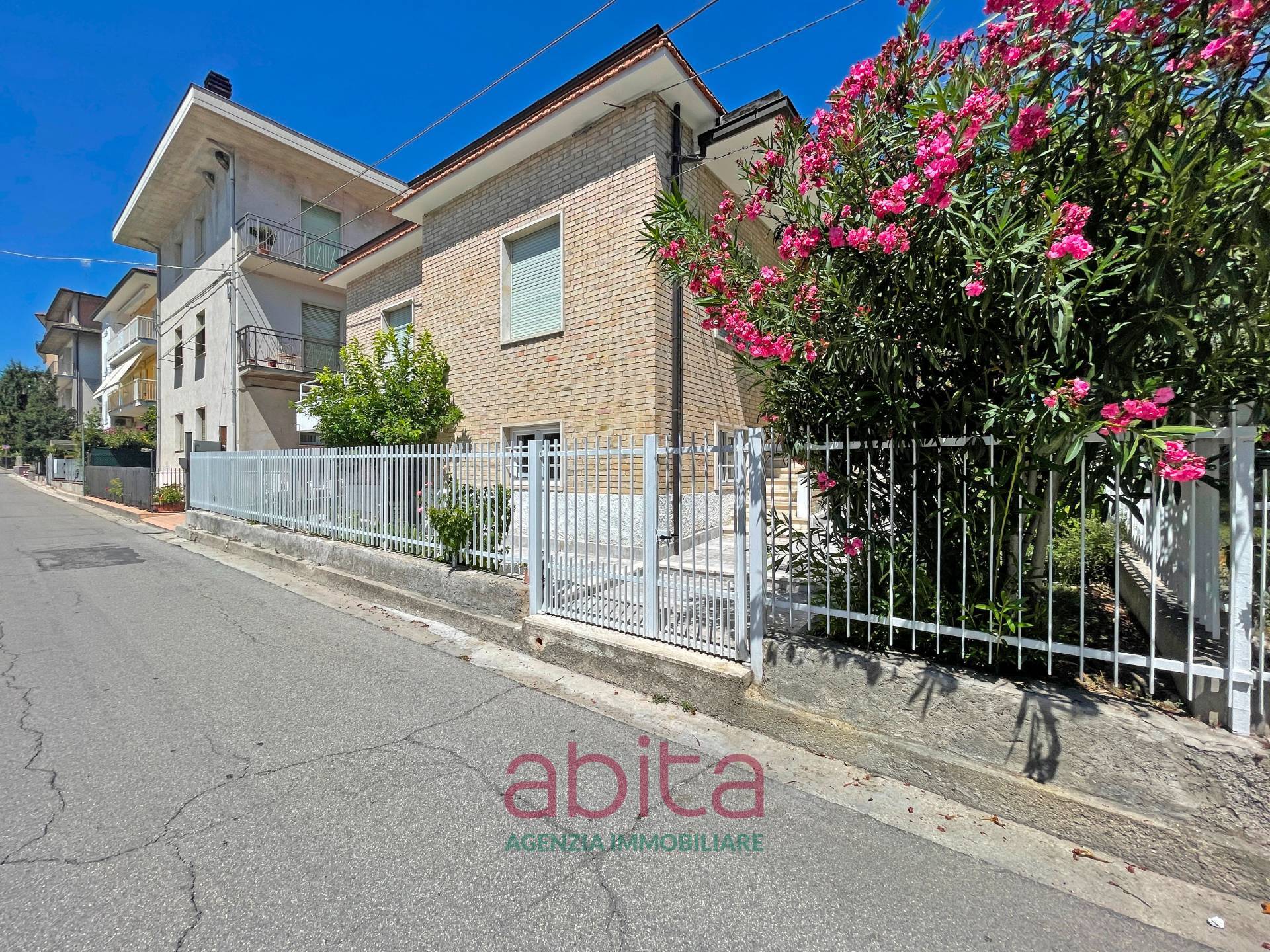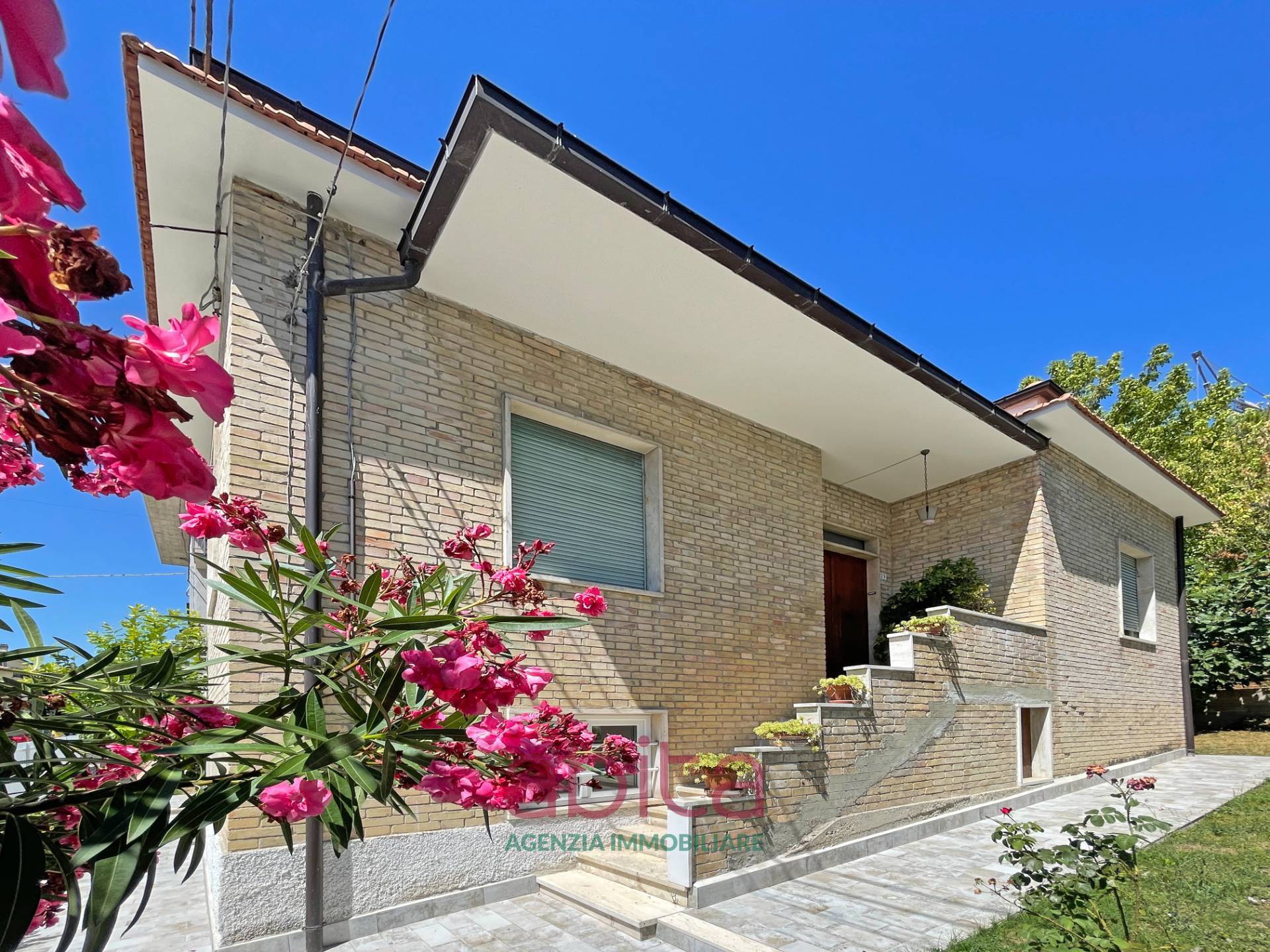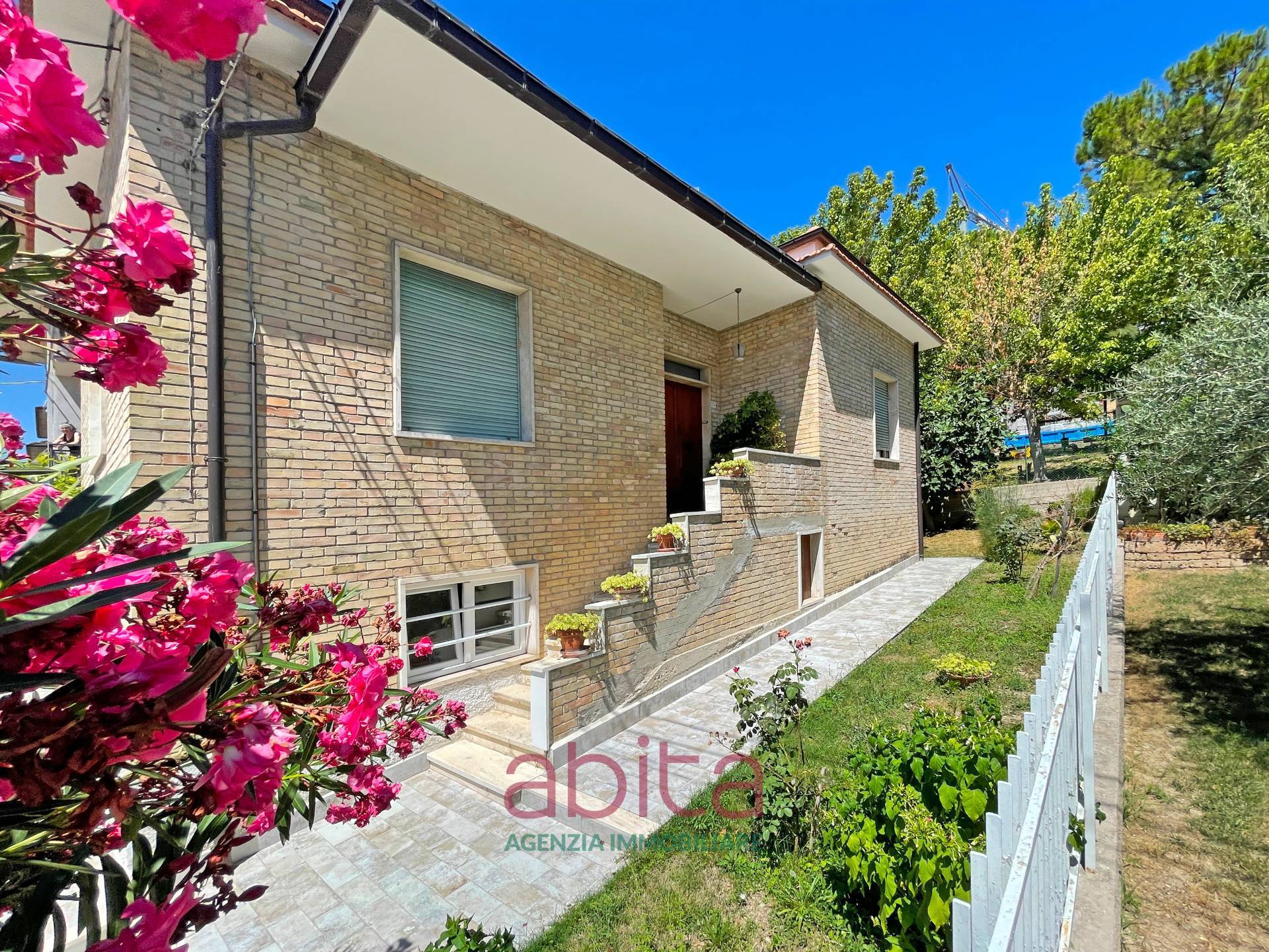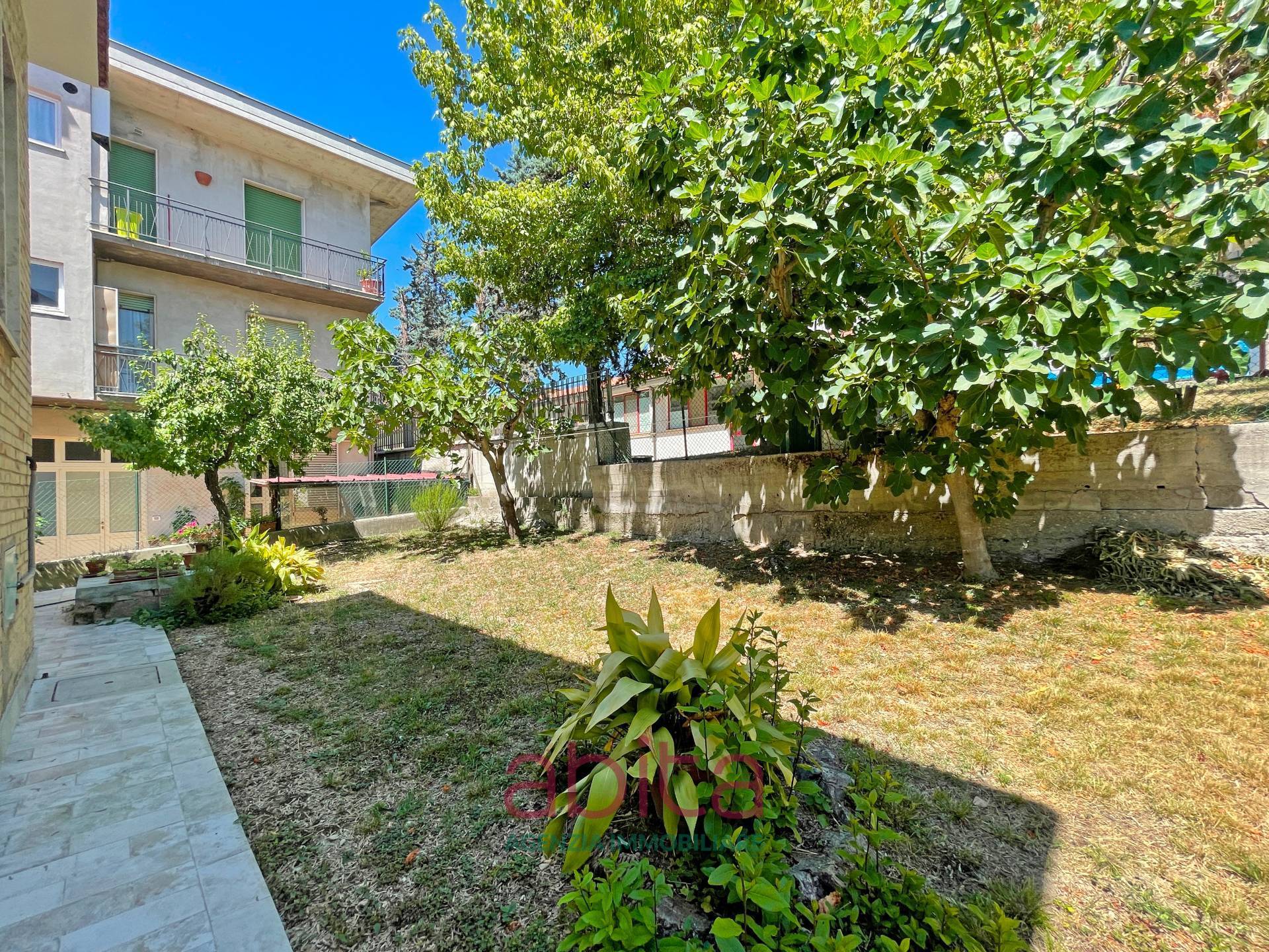 Castel di Lama basso, Casa singola in Vendita con ampio giardino, ingresso indipendente e corte esclusiva. Unità abitativa al piano rialzato composta da ingresso su disimpegno, sala, cucina con retro, due camere matrimoniali, bagno, un balcone al piano. Seminterrato con ampio locale, cantina e allo stato grezzo, altezza 2.50 dotati di affaccio sulla corte esterna. Oltre alla corte pavimentata per tutto il perimetro, vi è un giardino con piante da frutto. E' possibile realizzare un ingresso carrabile per le auto. Tetto in legno Nuovo
