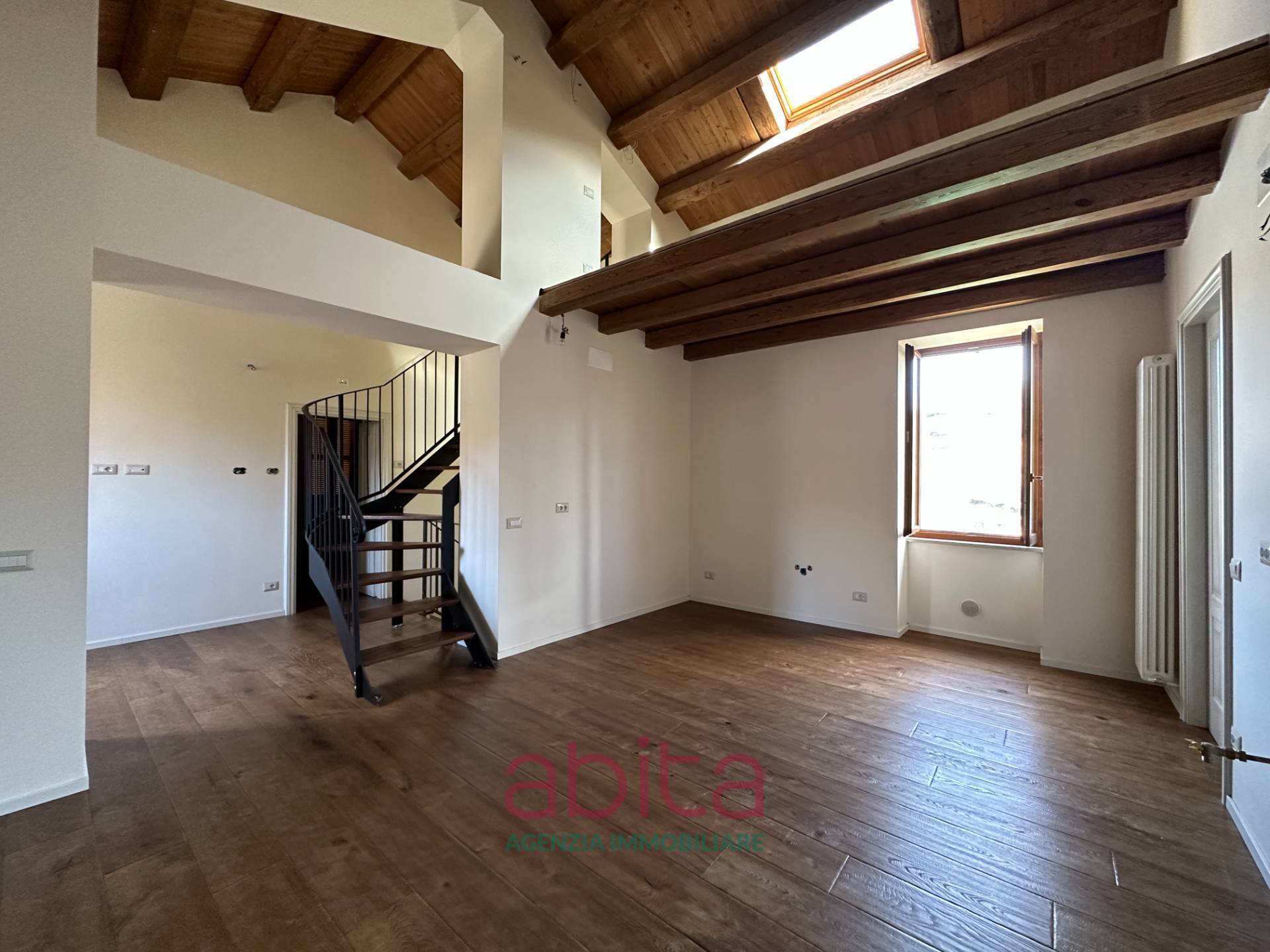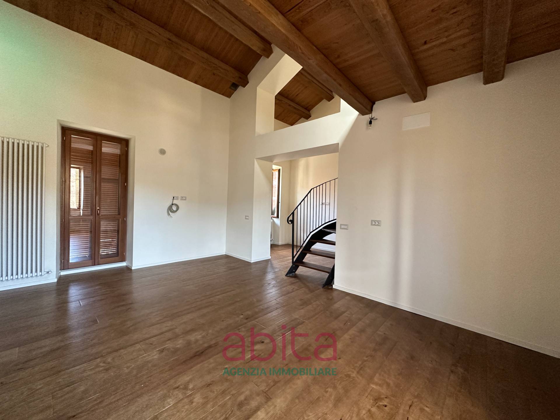 Casa due appartamento con giardino in Vendita. Porzione di Casale completamento ristrutturato nel 2022 composto da due piani ideale per due unità abitative. La casa si sviluppa sull'intero primo ed ultimo piano con soggiorno cucina due camere, 2 bagni, possibilità di terza stanza da letto e ampliamento del soppalco, ampio terrazzo. Al piano terra ampio locale rustico composto da due ambiente, con accesso direttamente su ampio giardino, bagno e locale multiuso e portico. La casa ha diversi accessi e si presta ad ospitare una grande famiglia. Locale garage e posti auto privati e recintati al piano terra.
