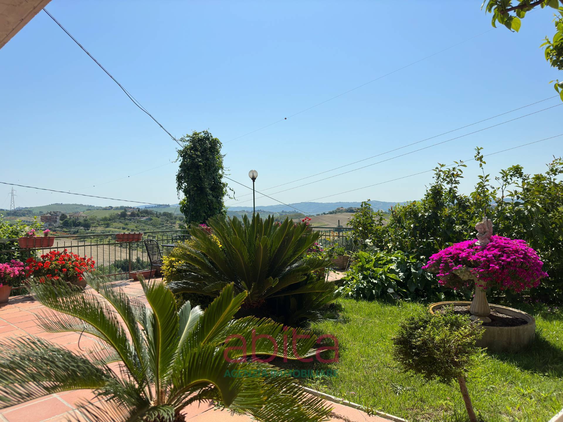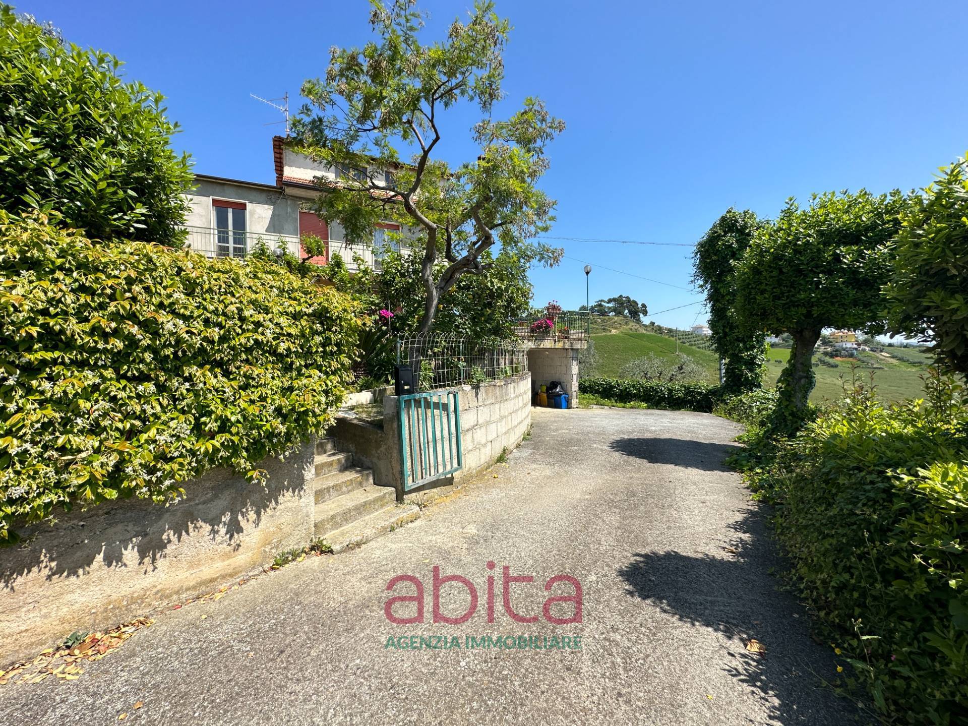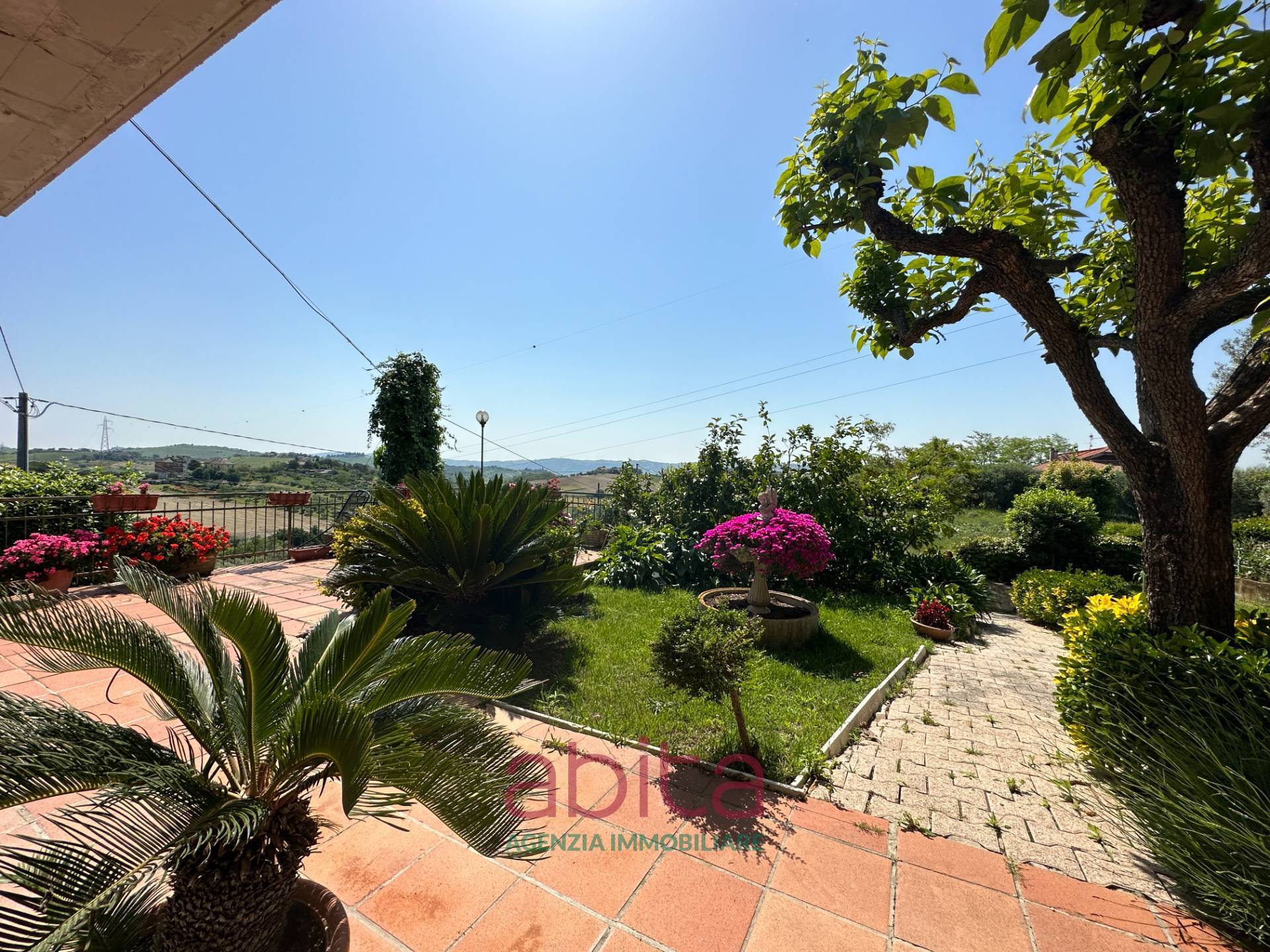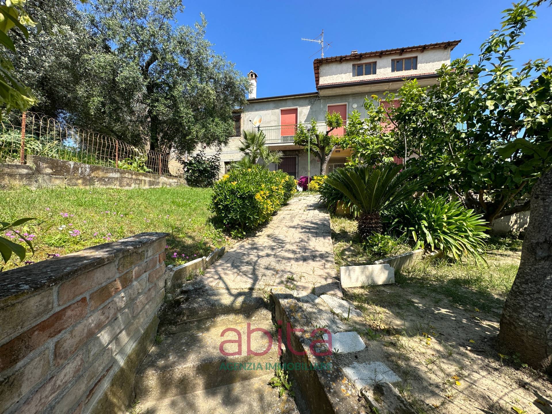 Casa singola in Vendita a Castorano, con giardino e terreno. La casa è posta in aderenza su un lato ad altra abitazione, è disposta su più livelli, abitabile da subito. Ingresso dal giardino con parte pavimentata, parte a prato, disimpegno sul quale affacciano due stanze molto grandi, un salottino con camino ed una cucina abitabile, scala interna che conduce al piano primo dove troviamo ben quattro camere e due bagni, balcone panoramico al piano. Piano secondo terrazza coperta. Cantina al piano seminterrato. Terreno di 2000 mq con piante ulivo.