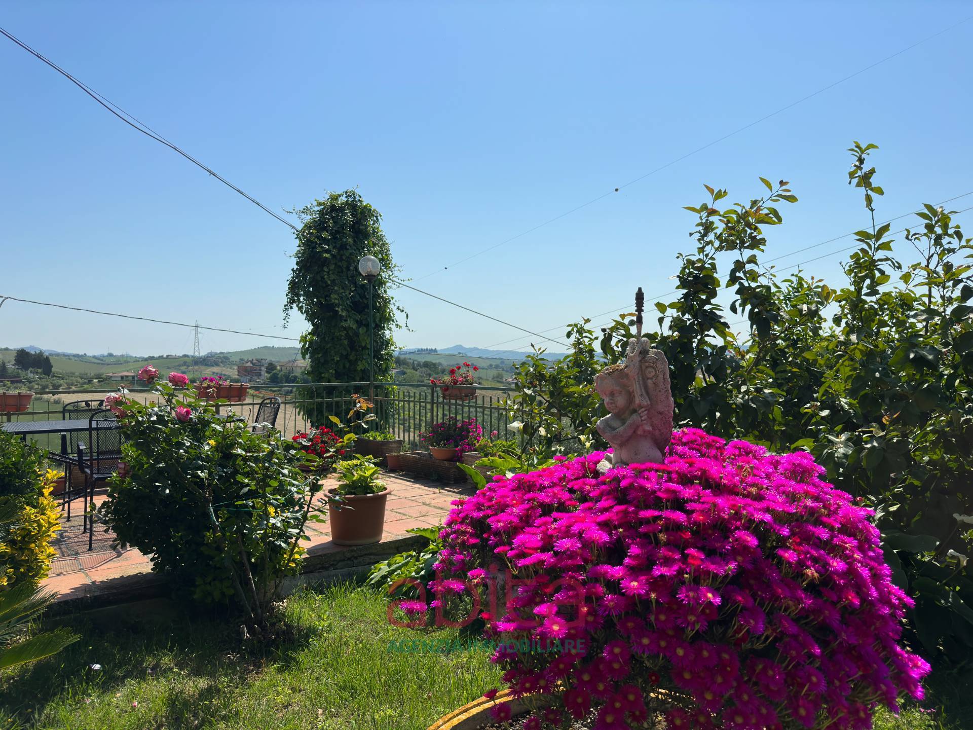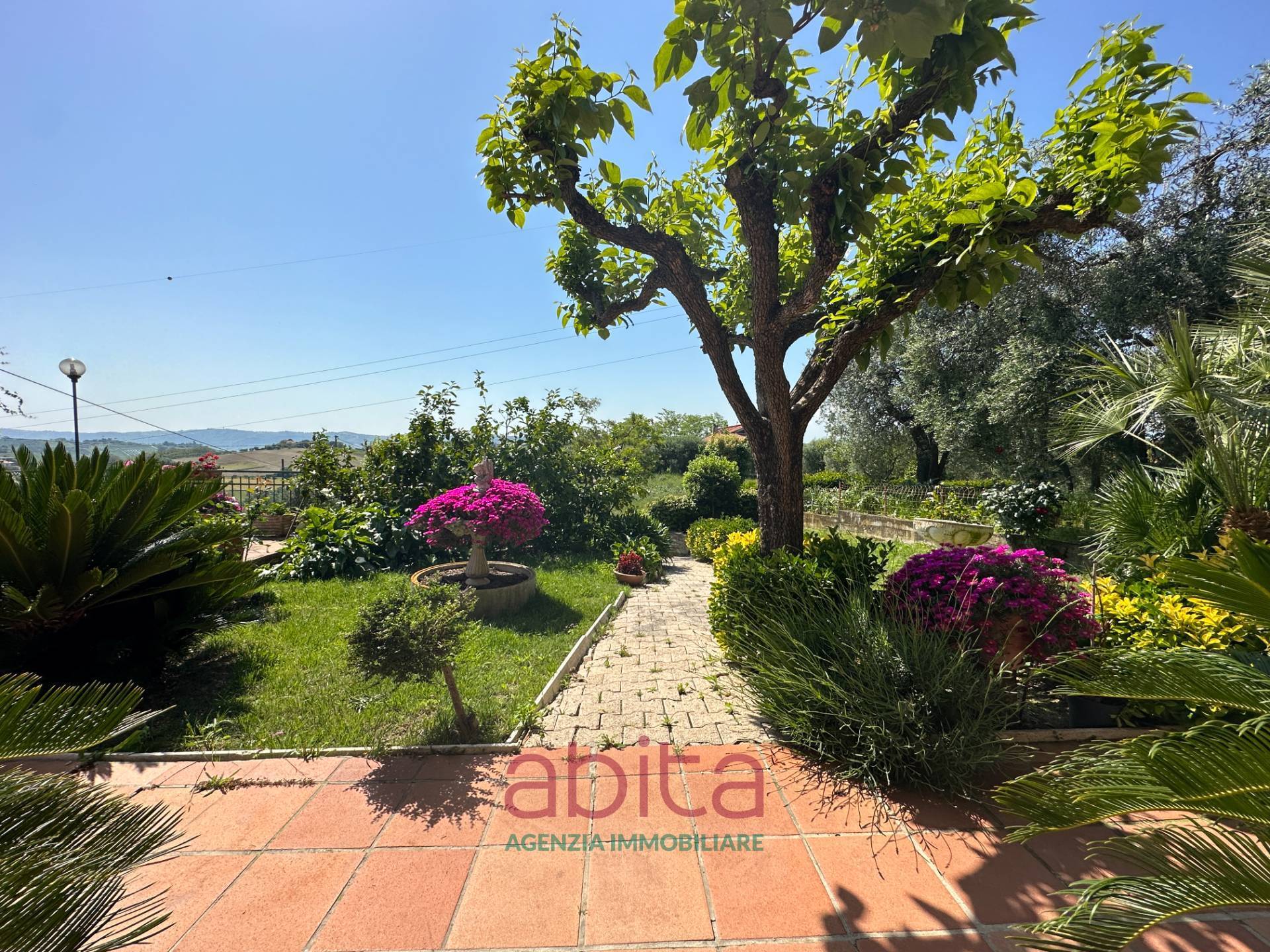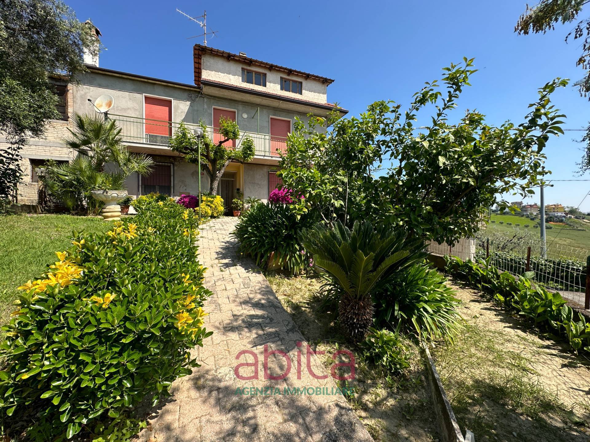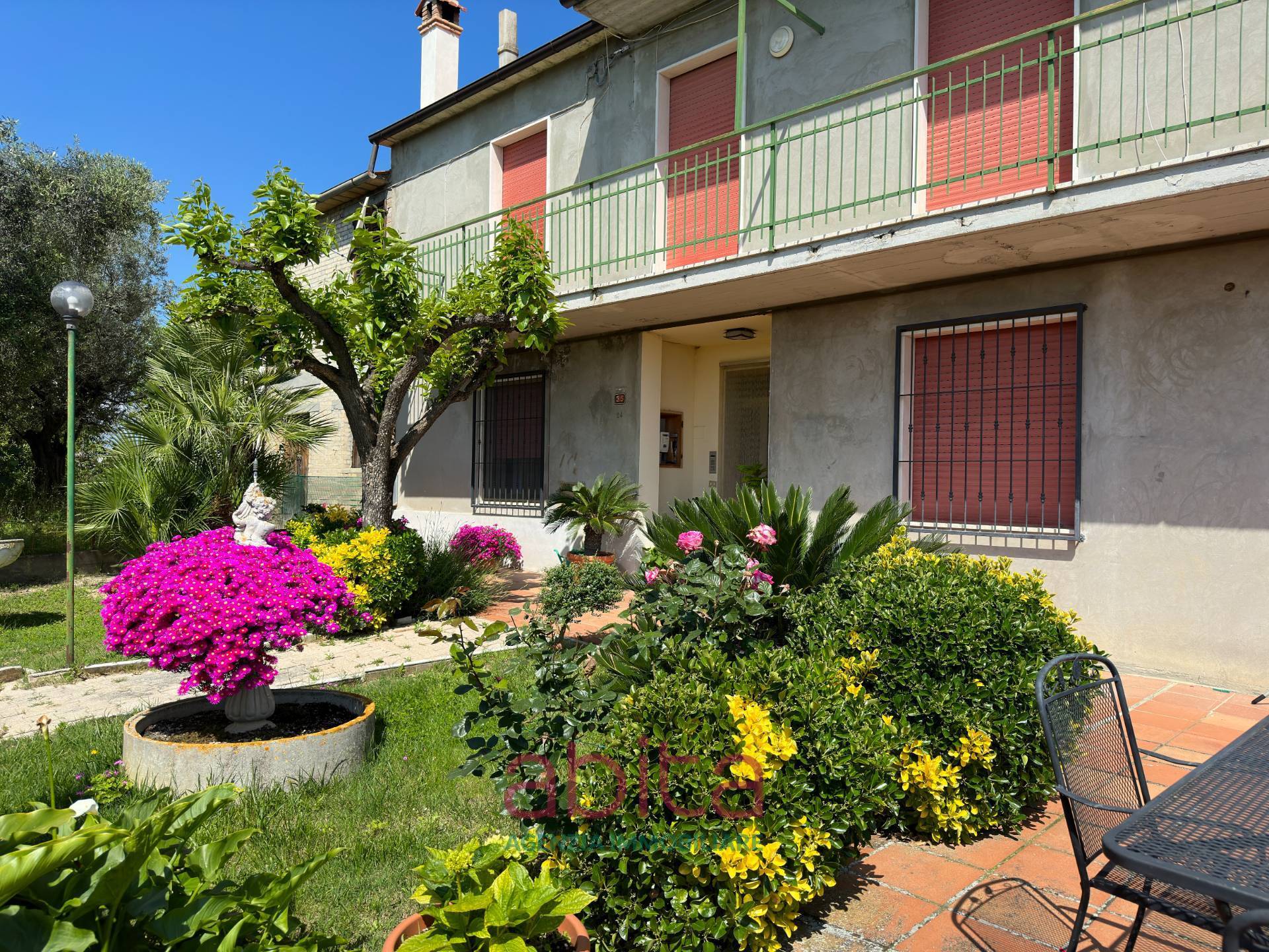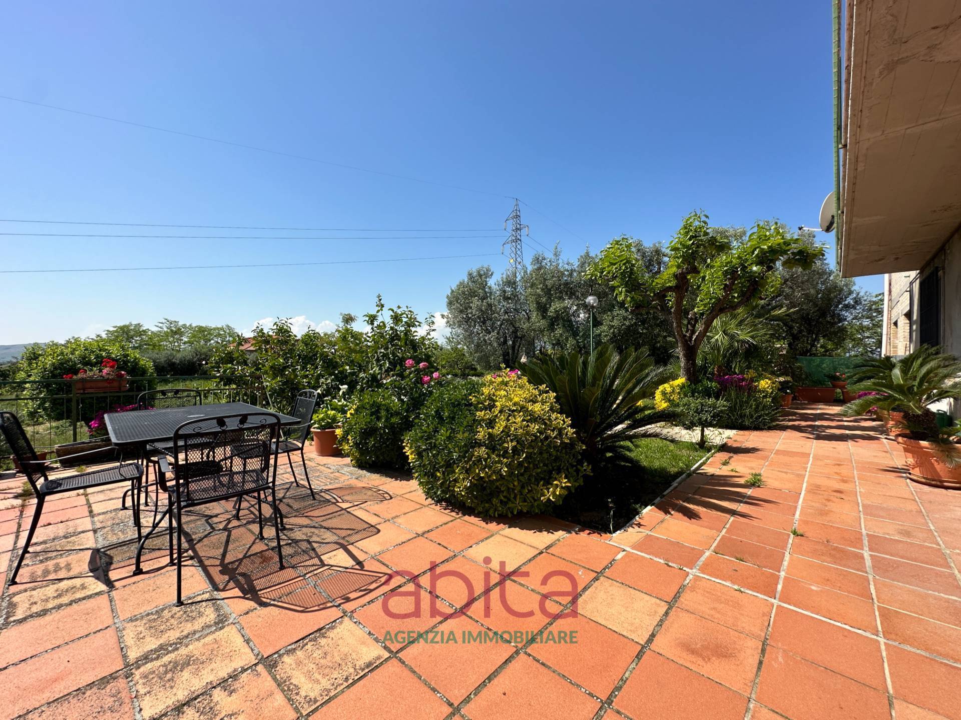 Casa singola in Vendita a Castorano, con giardino e terreno. La casa è posta in aderenza su un lato ad altra abitazione, è disposta su più livelli, abitabile da subito. Ingresso dal giardino con parte pavimentata, parte a prato, disimpegno sul quale affacciano due stanze molto grandi, un salottino con camino ed una cucina abitabile, scala interna che conduce al piano primo dove troviamo ben quattro camere e due bagni, balcone panoramico al piano. Piano secondo terrazza coperta. Cantina al piano seminterrato. Terreno di 2000 mq con piante ulivo.