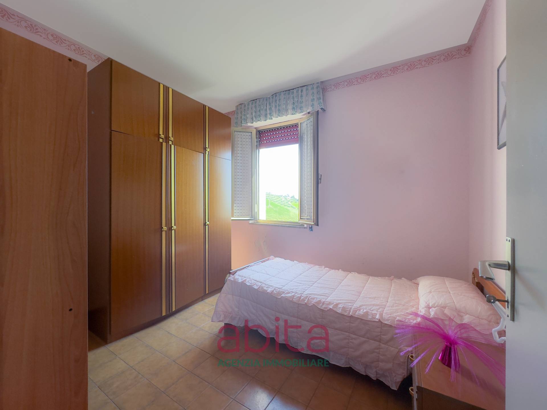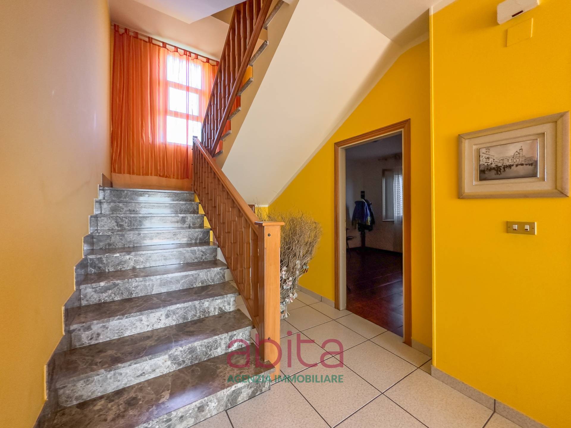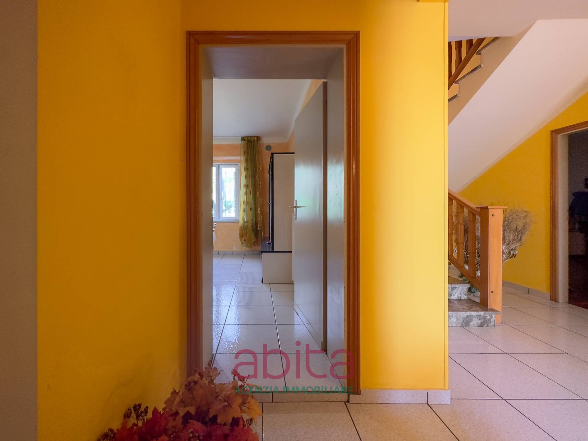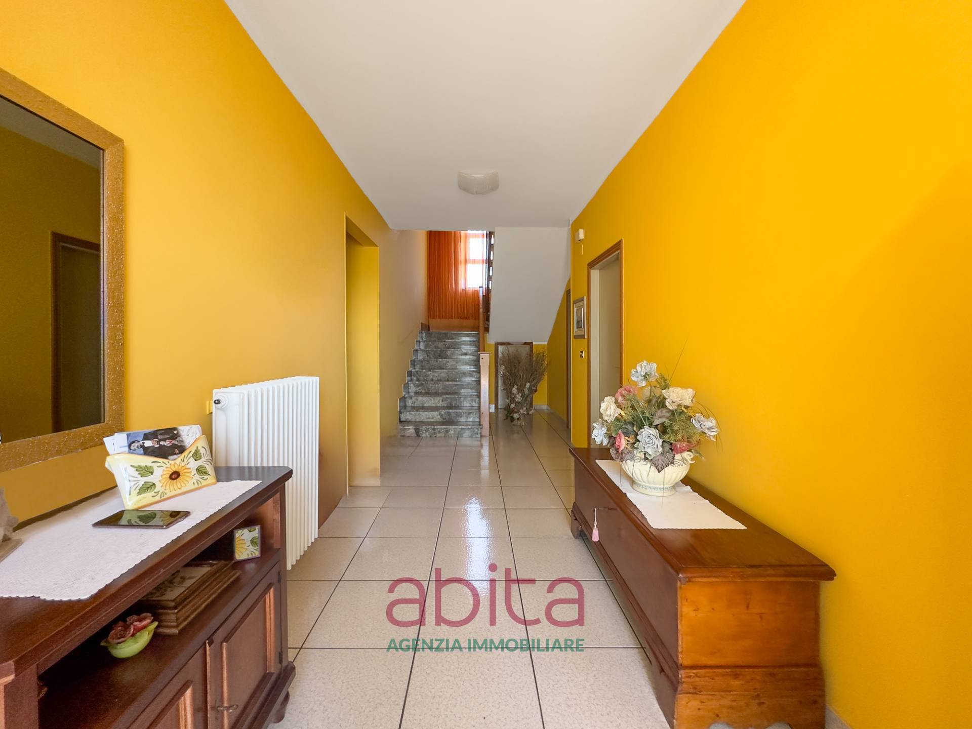 Casa singola in Vendita a Castorano, con giardino e terreno. La casa è posta in aderenza su un lato ad altra abitazione, è disposta su più livelli, abitabile da subito. Ingresso dal giardino con parte pavimentata, parte a prato, disimpegno sul quale affacciano due stanze molto grandi, un salottino con camino ed una cucina abitabile, scala interna che conduce al piano primo dove troviamo ben quattro camere e due bagni, balcone panoramico al piano. Piano secondo terrazza coperta. Cantina al piano seminterrato. Terreno di 2000 mq con piante ulivo.