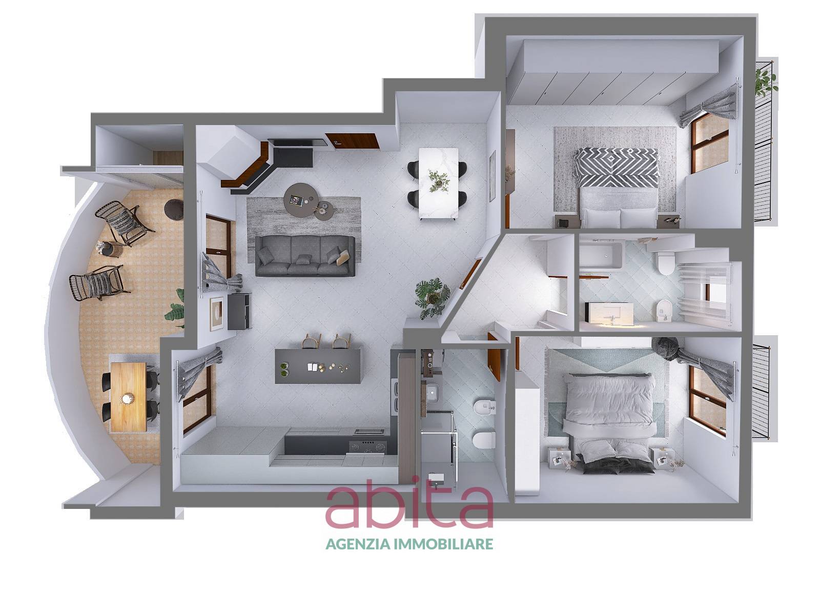 Pagliare del Tronto Spinetoli Appartamento in Vendita posto al piano primo di palazzina con ascensore. Ingresso su soggiorno con zona cucina e terrazzo abitabile, due camere, bagno, wc, due balconi al piano. Locale uso Garage al piano primo sotto strada. Cucina inclusa nel prezzo
