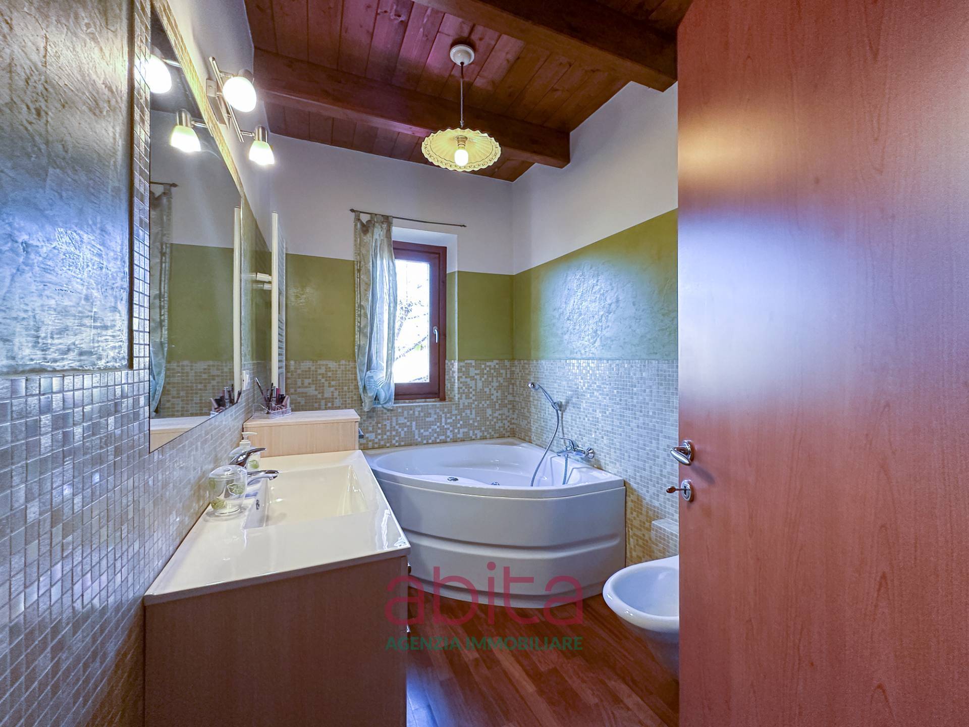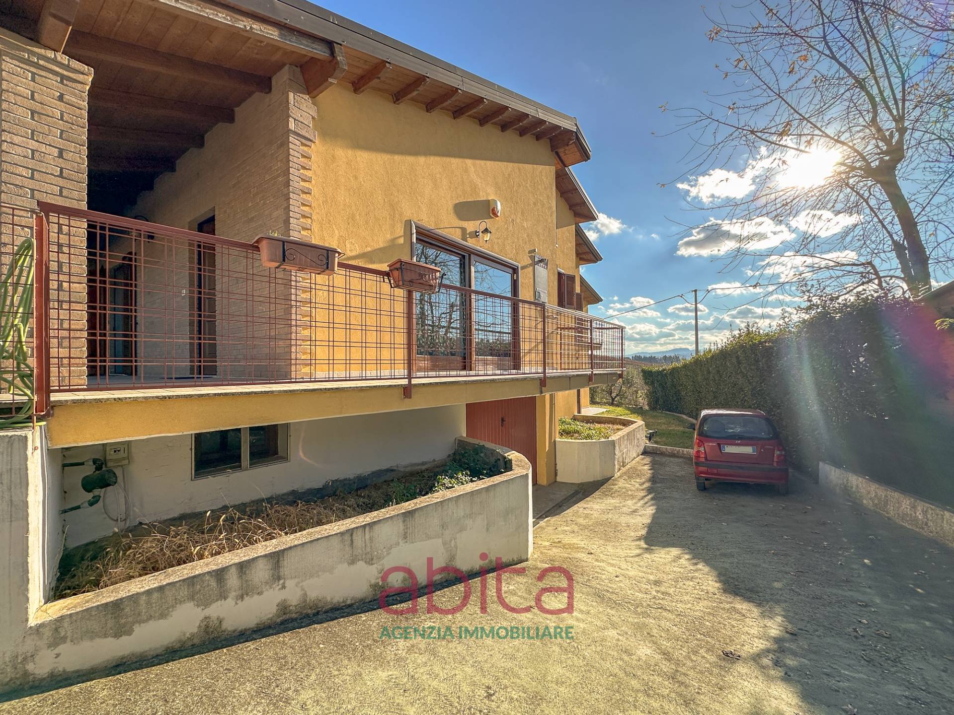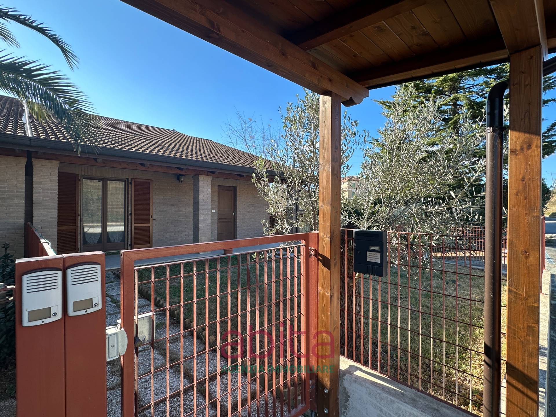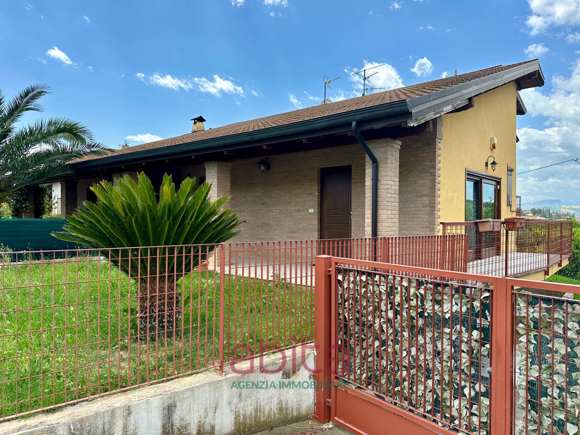 Castel di Lama Piattoni Chiarini Villa Villetta in bifamiliare a schiera in Vendita disposta su più livelli con 200 mq di Giardino, corte e garage triplo. Tetto in legno e cappotto termico. La casa si sviluppa su soggiorno con balcone panoramico, cucina separata con accesso al giardino d'ingresso, bagno ospiti, soppalco in legno, reparto notte con pavimentazione in parquet, con tre camere da letto, due bagni di cui uno nella camera matrimoniale, tre ripostigli nel sottotetto di cui uno attrezzato a bagno. Al piano seminterrato troviamo un ampio soggiorno con cucina, una camera da letto, tutti con accesso da altro giardino, un bagno, una lavanderia, un garage con 3 posti auto, cantina e fondaco. La corte esterna può ospitare altre autovetture.