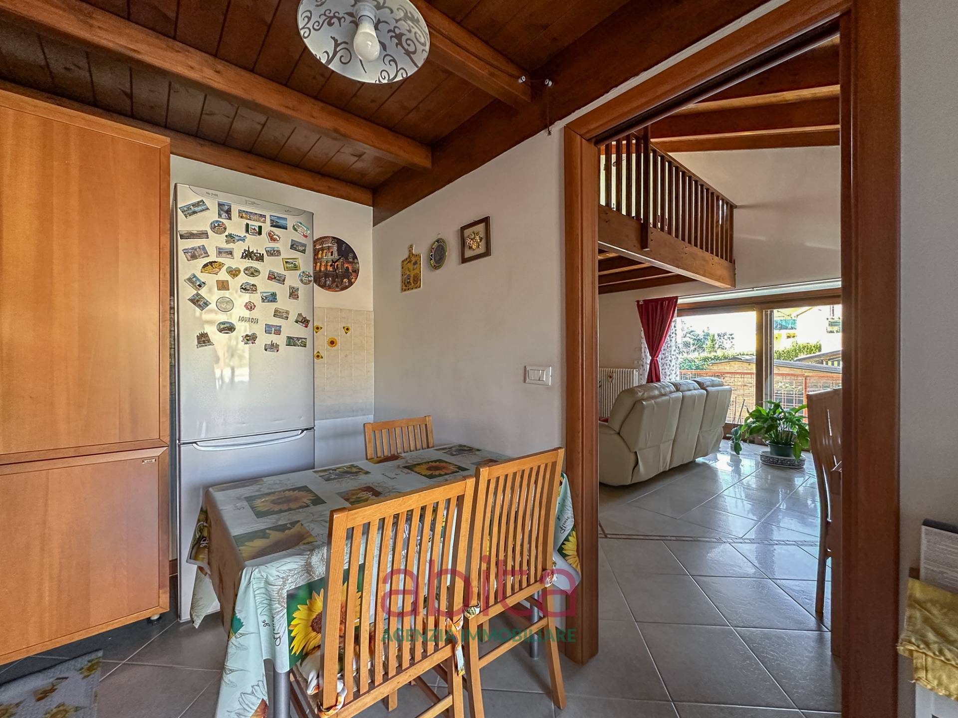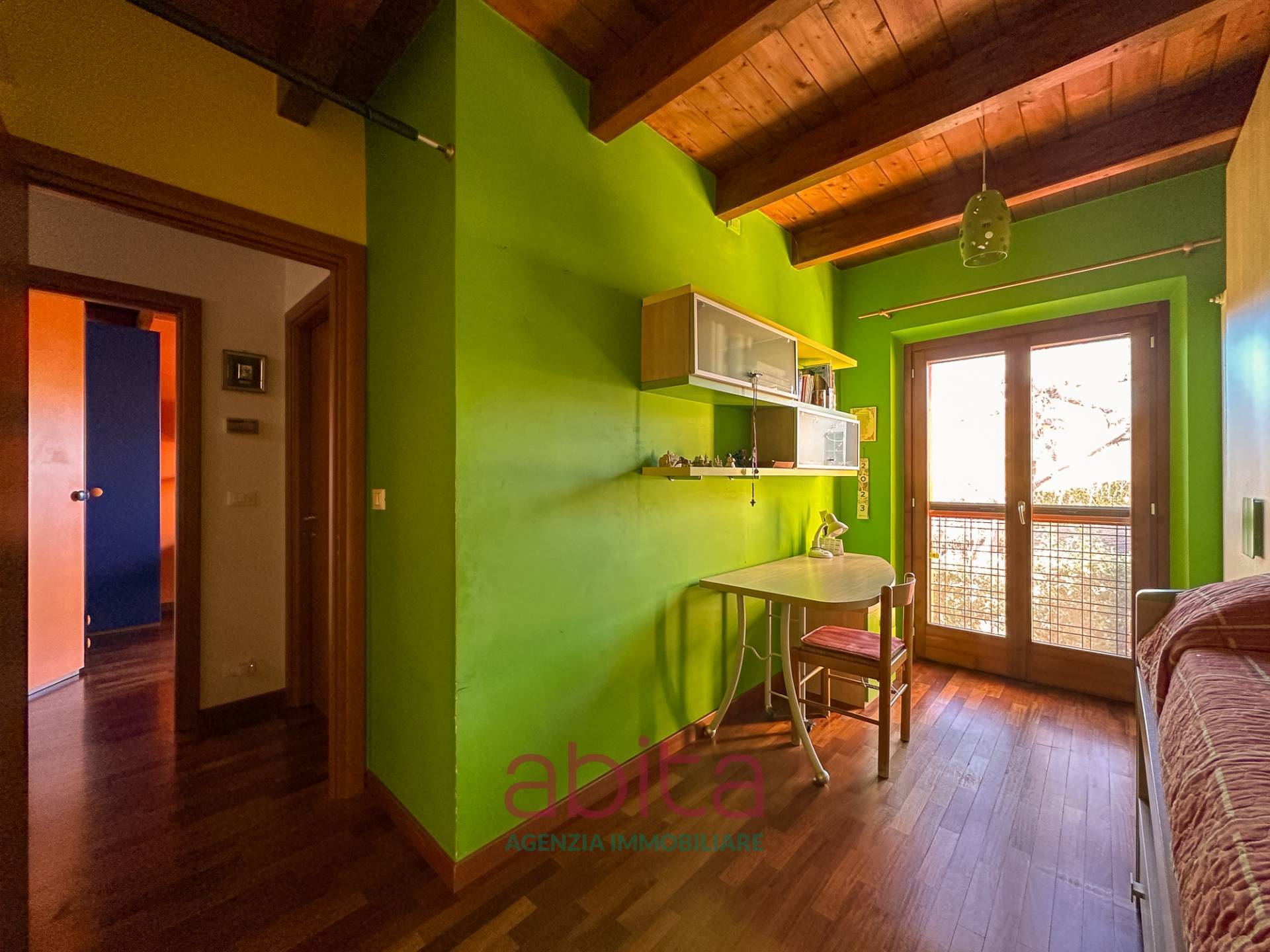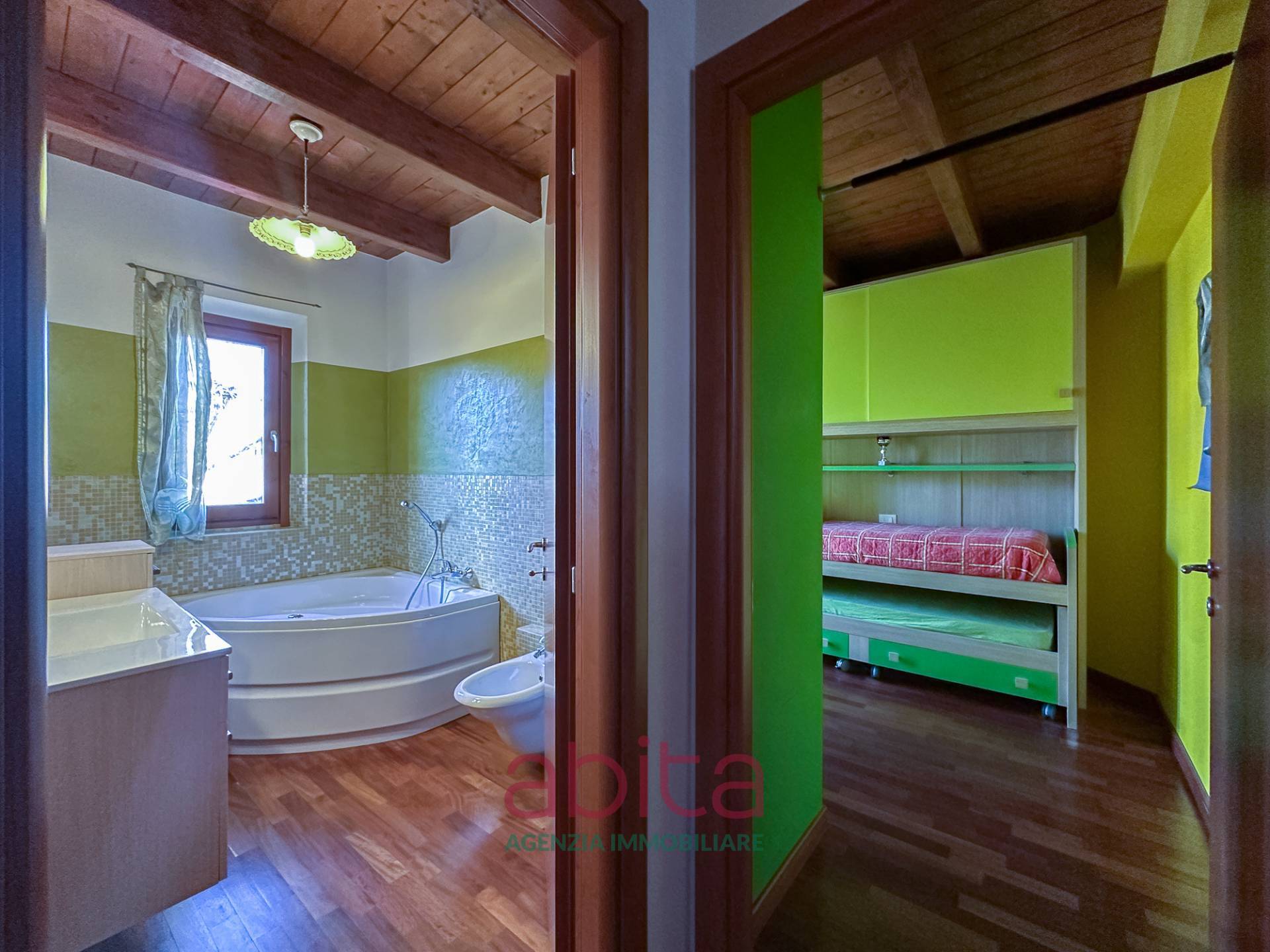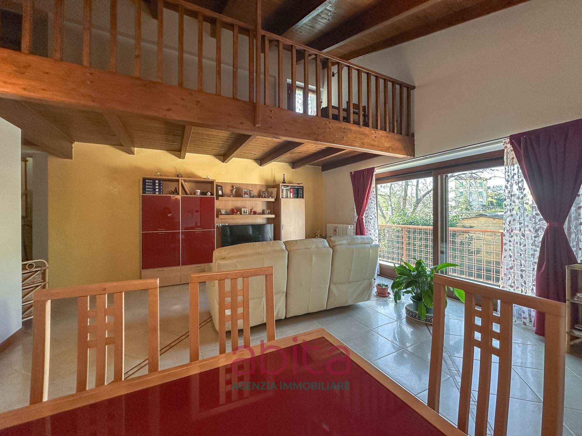 Castel di Lama Piattoni Chiarini Villa Villetta in bifamiliare a schiera in Vendita disposta su più livelli con 200 mq di Giardino, corte e garage triplo. Tetto in legno e cappotto termico. La casa si sviluppa su soggiorno con balcone panoramico, cucina separata con accesso al giardino d'ingresso, bagno ospiti, soppalco in legno, reparto notte con pavimentazione in parquet, con tre camere da letto, due bagni di cui uno nella camera matrimoniale, tre ripostigli nel sottotetto di cui uno attrezzato a bagno. Al piano seminterrato troviamo un ampio soggiorno con cucina, una camera da letto, tutti con accesso da altro giardino, un bagno, una lavanderia, un garage con 3 posti auto, cantina e fondaco. La corte esterna può ospitare altre autovetture.