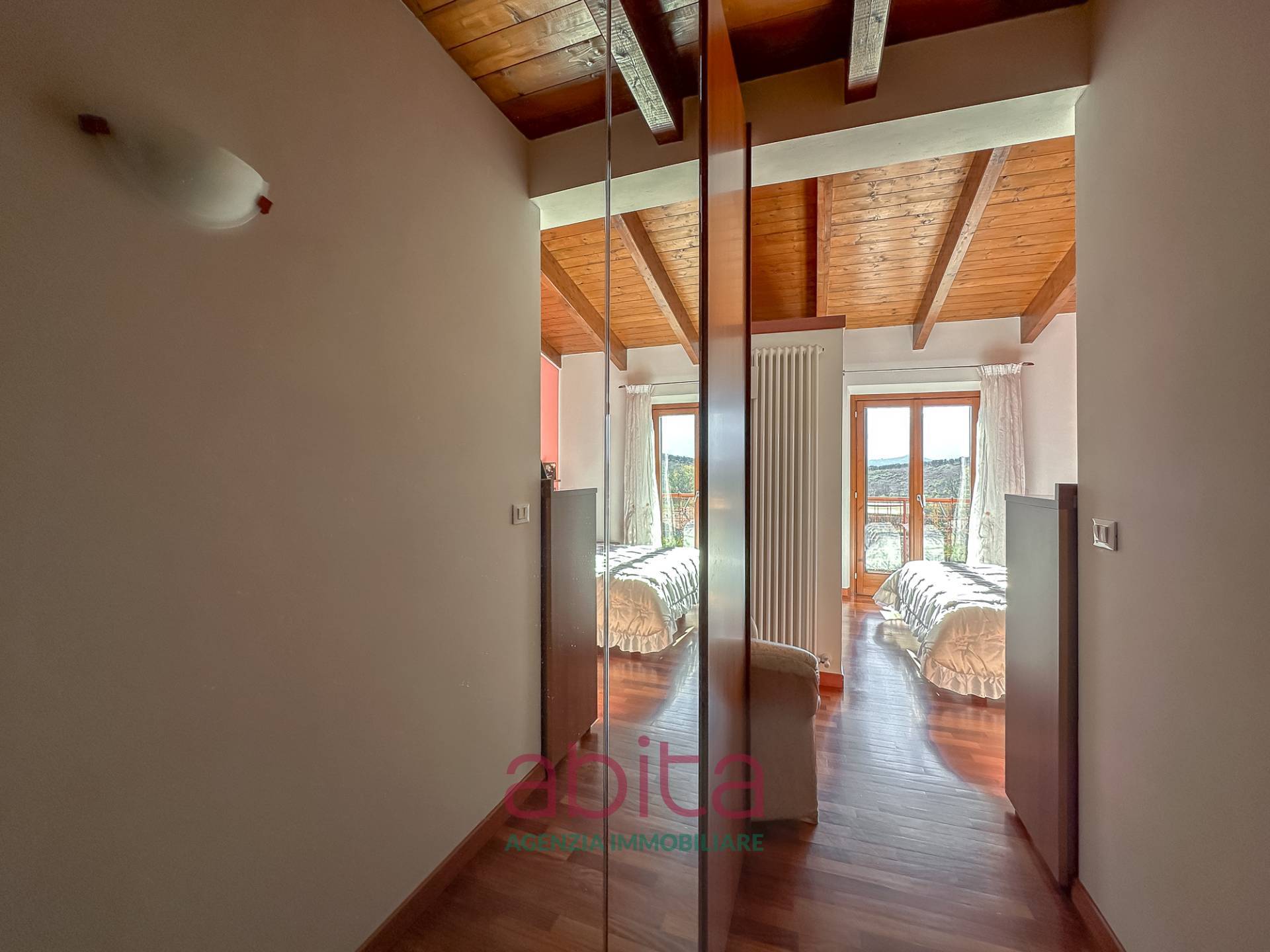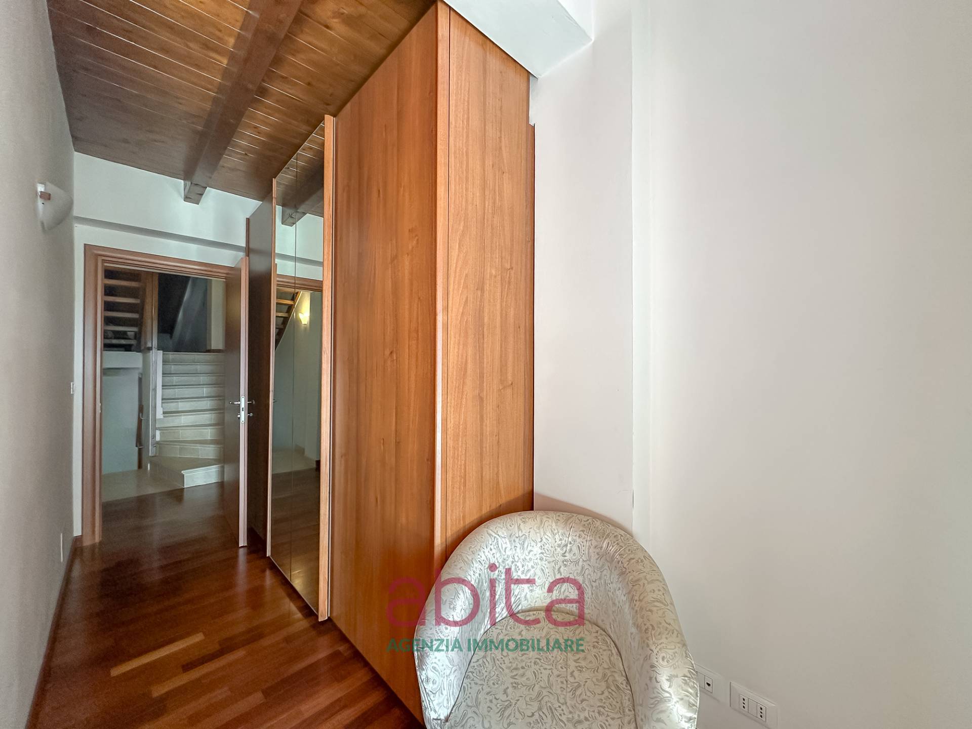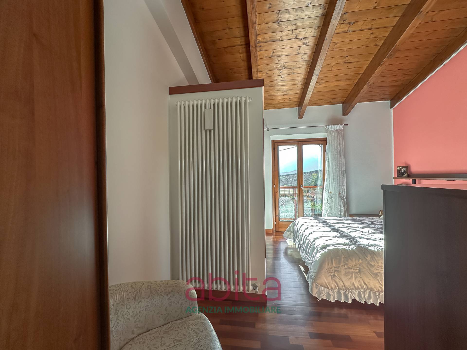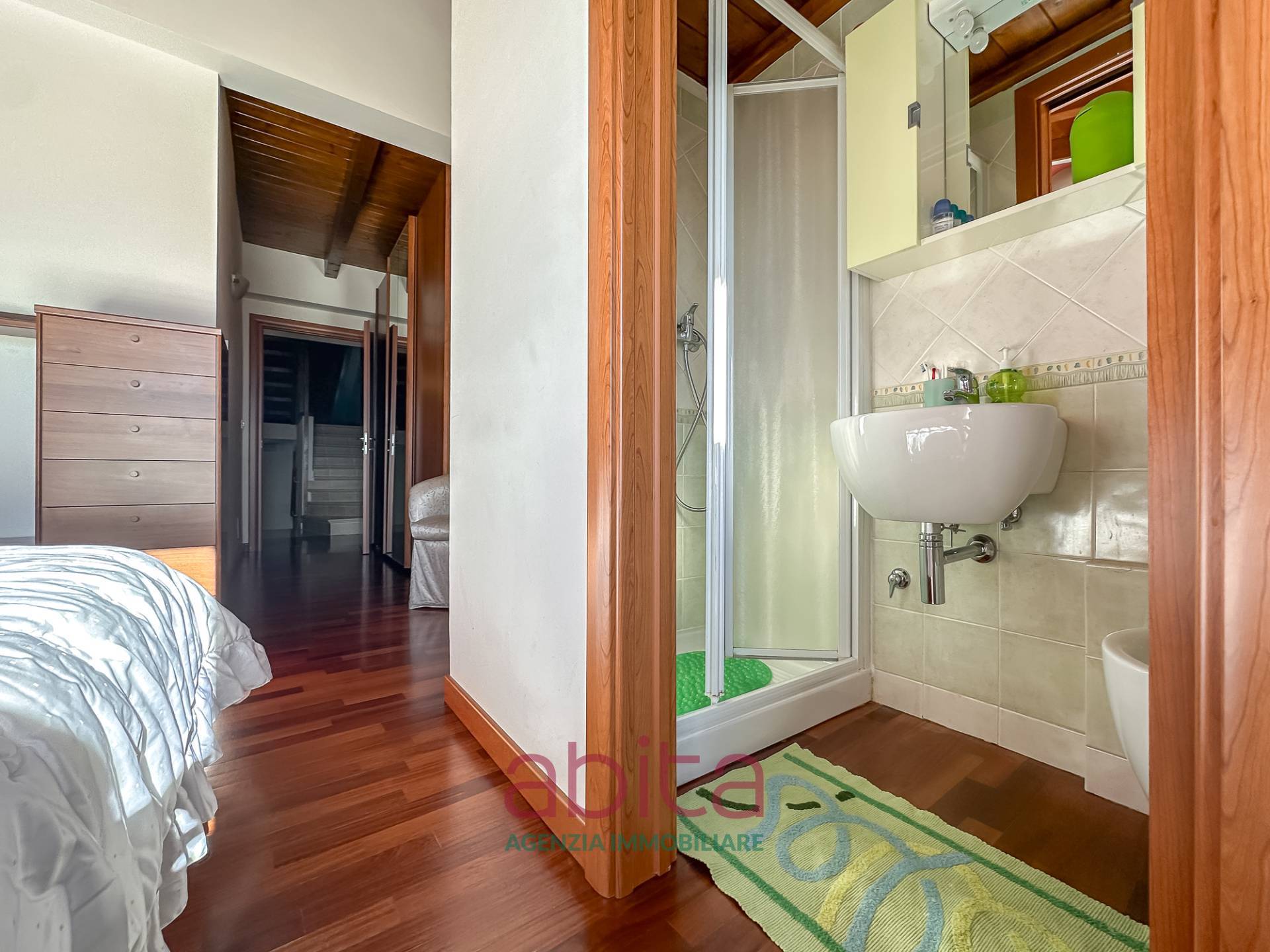 Castel di Lama Piattoni Chiarini Villa Villetta in bifamiliare a schiera in Vendita disposta su più livelli con 200 mq di Giardino, corte e garage triplo. Tetto in legno e cappotto termico. La casa si sviluppa su soggiorno con balcone panoramico, cucina separata con accesso al giardino d'ingresso, bagno ospiti, soppalco in legno, reparto notte con pavimentazione in parquet, con tre camere da letto, due bagni di cui uno nella camera matrimoniale, tre ripostigli nel sottotetto di cui uno attrezzato a bagno. Al piano seminterrato troviamo un ampio soggiorno con cucina, una camera da letto, tutti con accesso da altro giardino, un bagno, una lavanderia, un garage con 3 posti auto, cantina e fondaco. La corte esterna può ospitare altre autovetture.