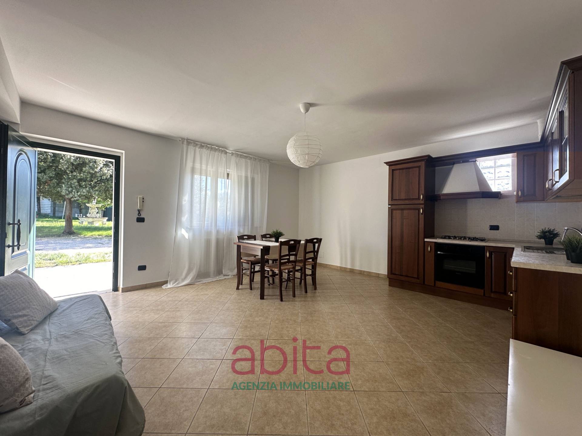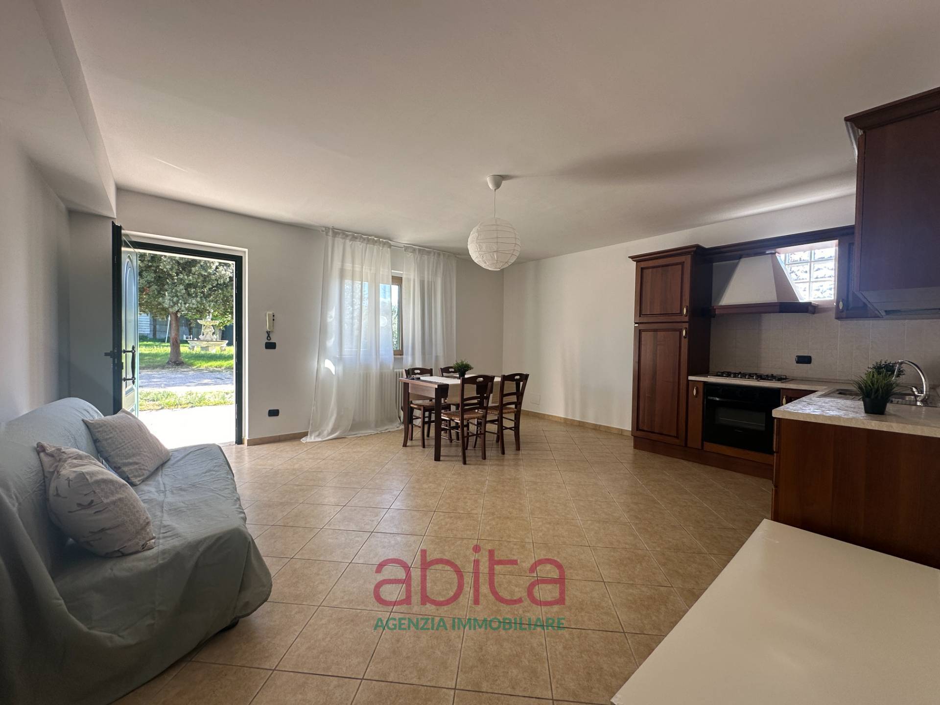 Castel di Lama Appartamento Bilocale con giardino e ingresso indipendente in Vendita, in casa singola recintata, posto al piano terra con ingresso indipendente, composto da ingresso su soggiorno con cucina a vista, disimpegno, camera matrimoniale e bagno. Nessuna spesa condominiale. Arredato.