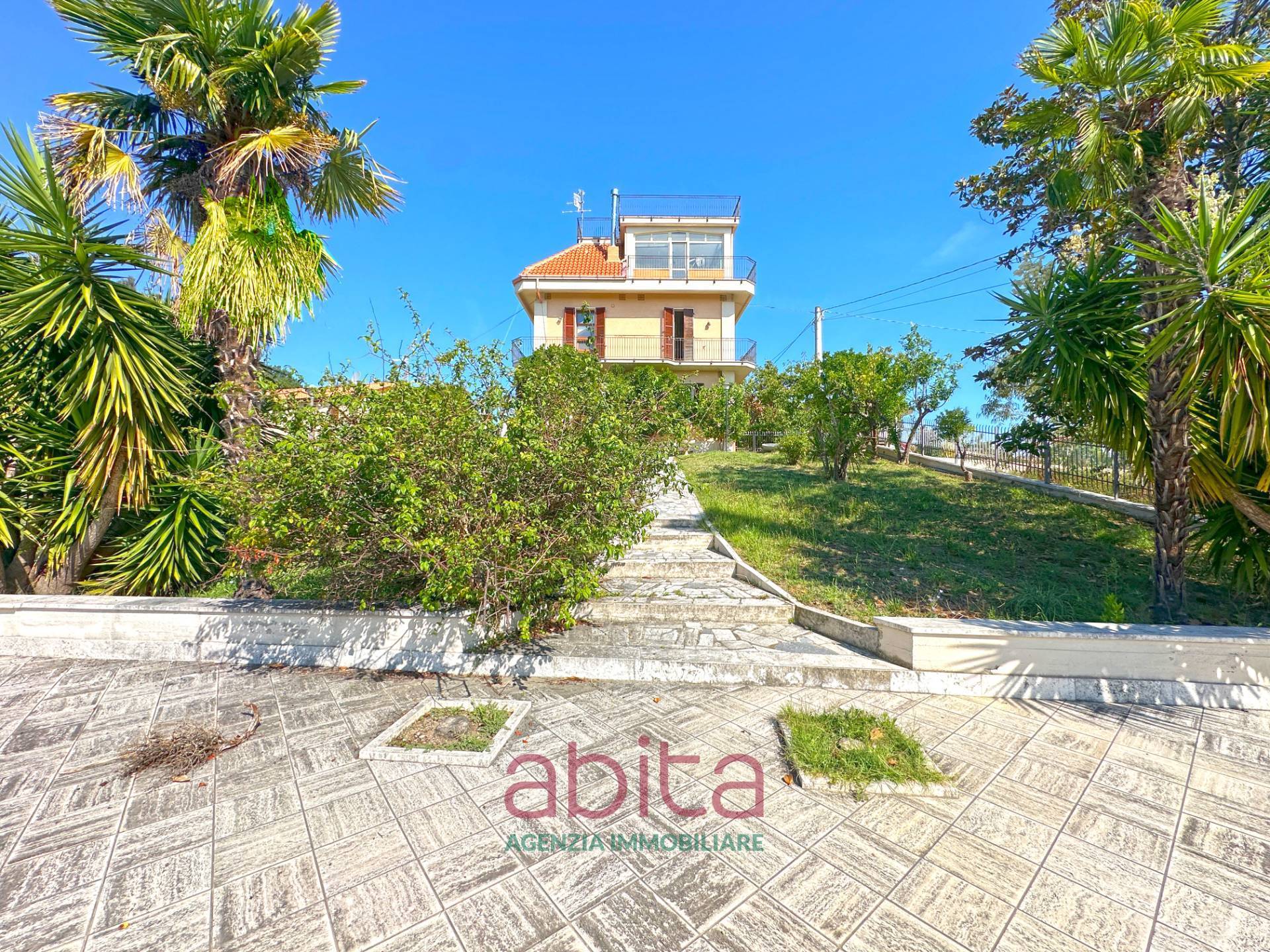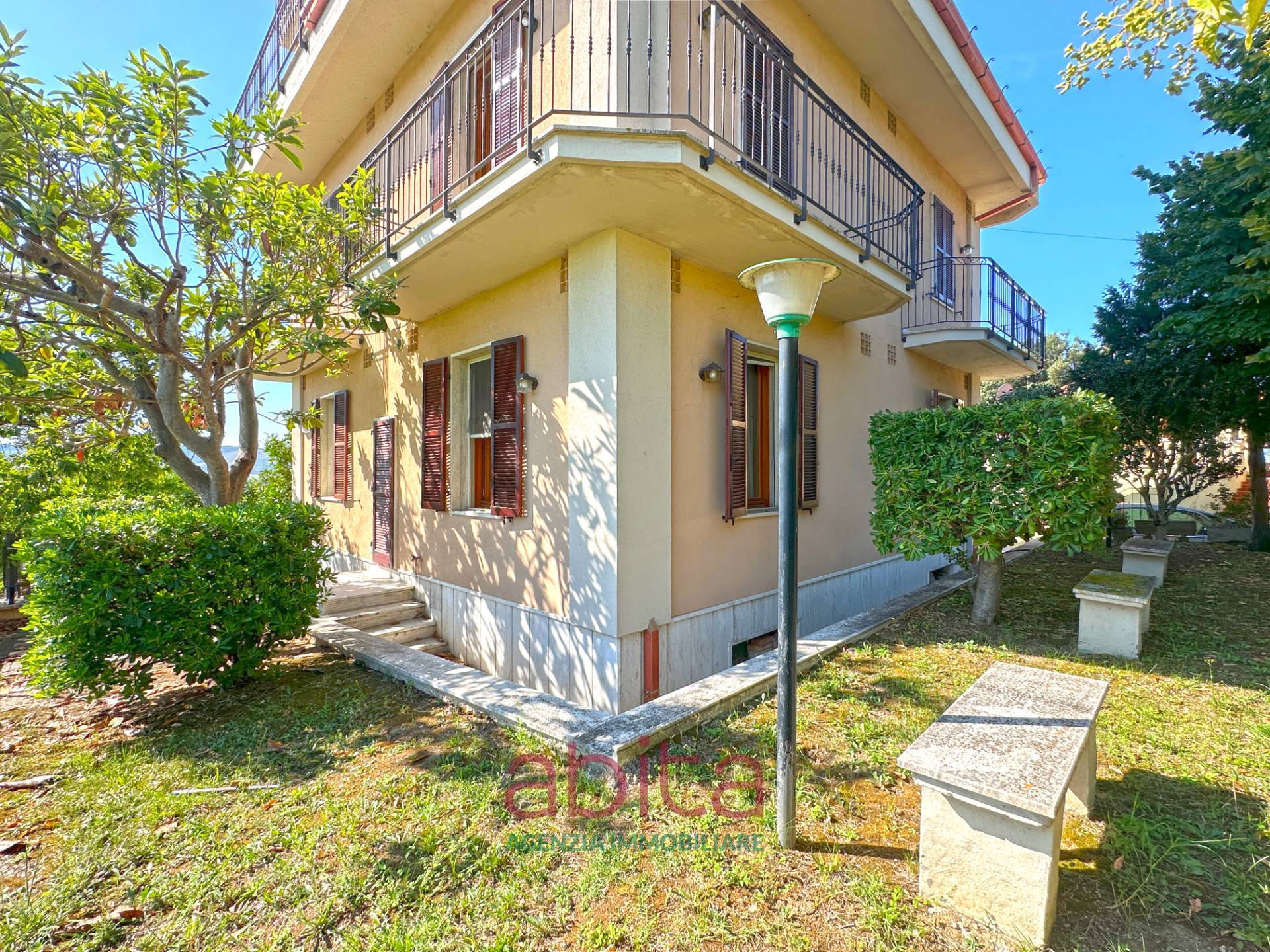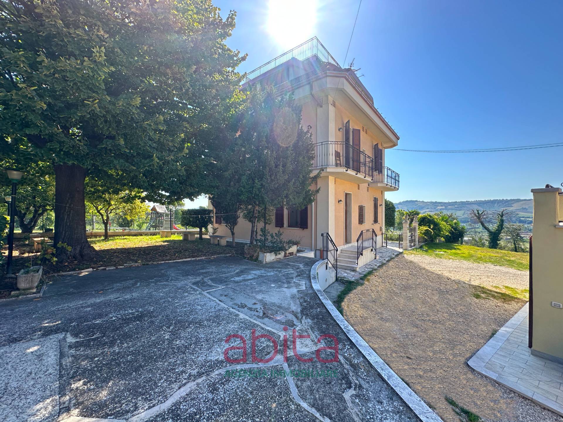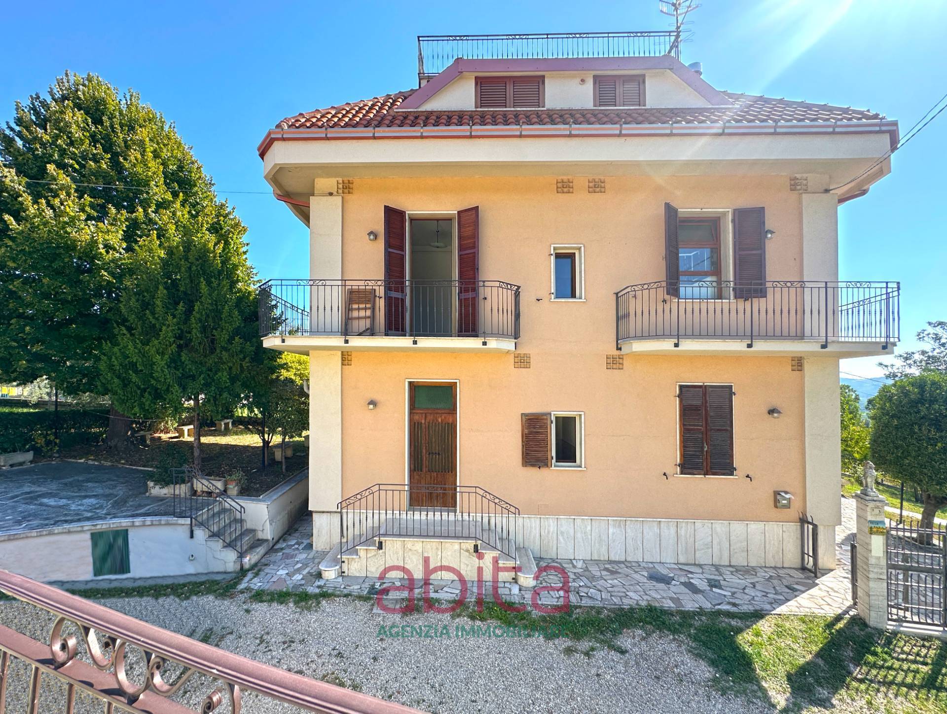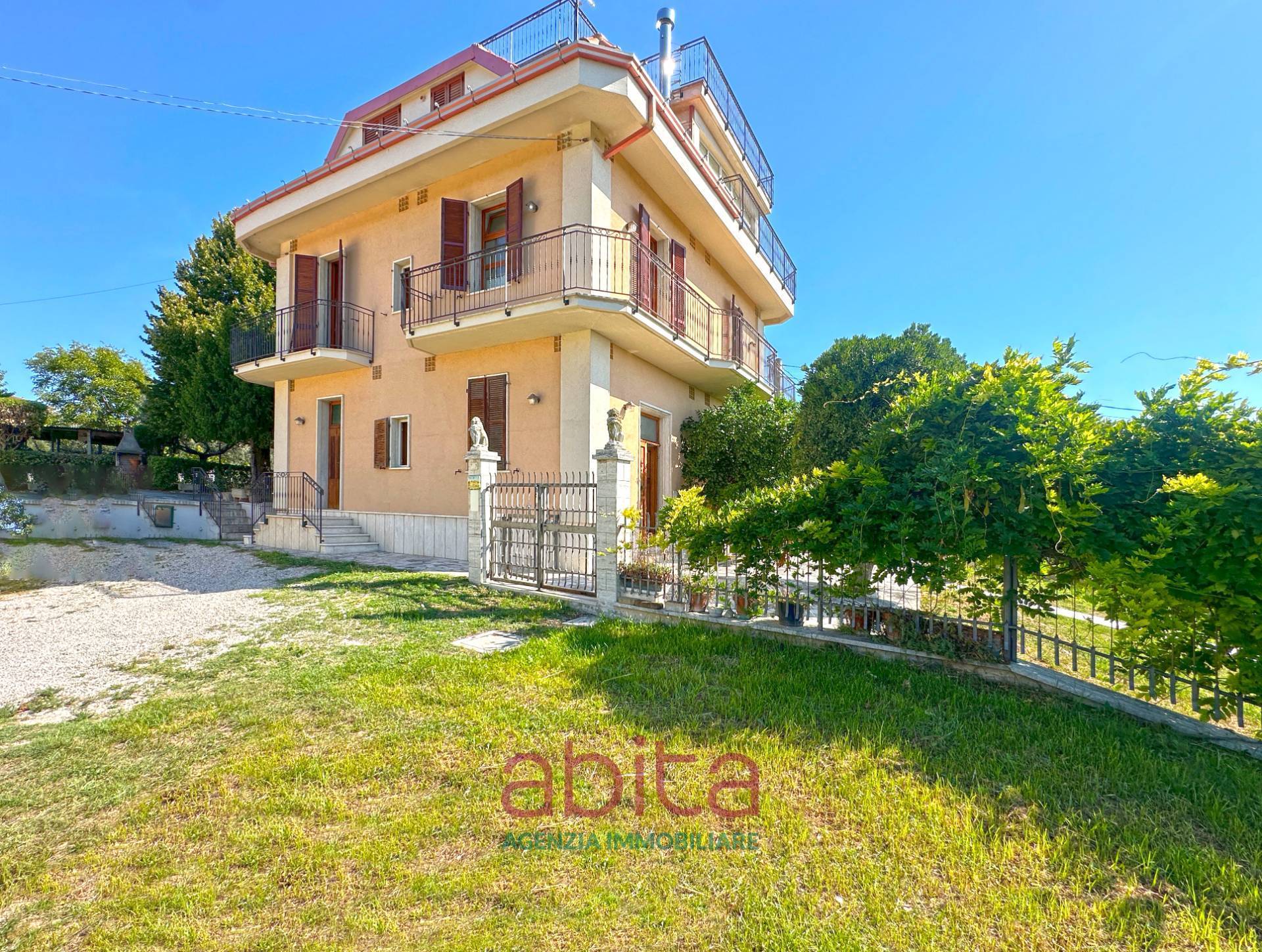 Castel di Lama Villa singola in Vendita con giardino e terreno circostante di 3000 mq. La casa di 240 si sviluppa su tre piani per un di circa 80 mq ciascuno. Piano terra 3 stanze oltre cucina e bagno, piano primo 3 camere e bagno, piano secondo soffitta mansardato, 3 stanze e bagno. Botola di accesso al tetto, terrazzo lastrico di copertura di cui si gode di una vista unica su tutta la vallata. Garage e cantina compresi nella Vendita si trovano al piano terra del fabbricato confinante.