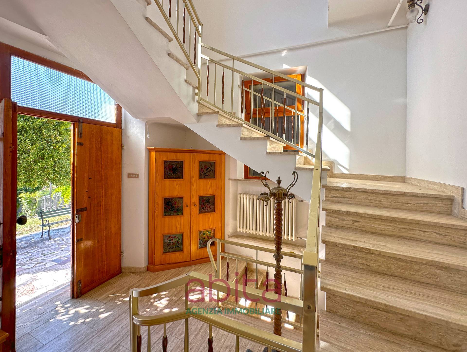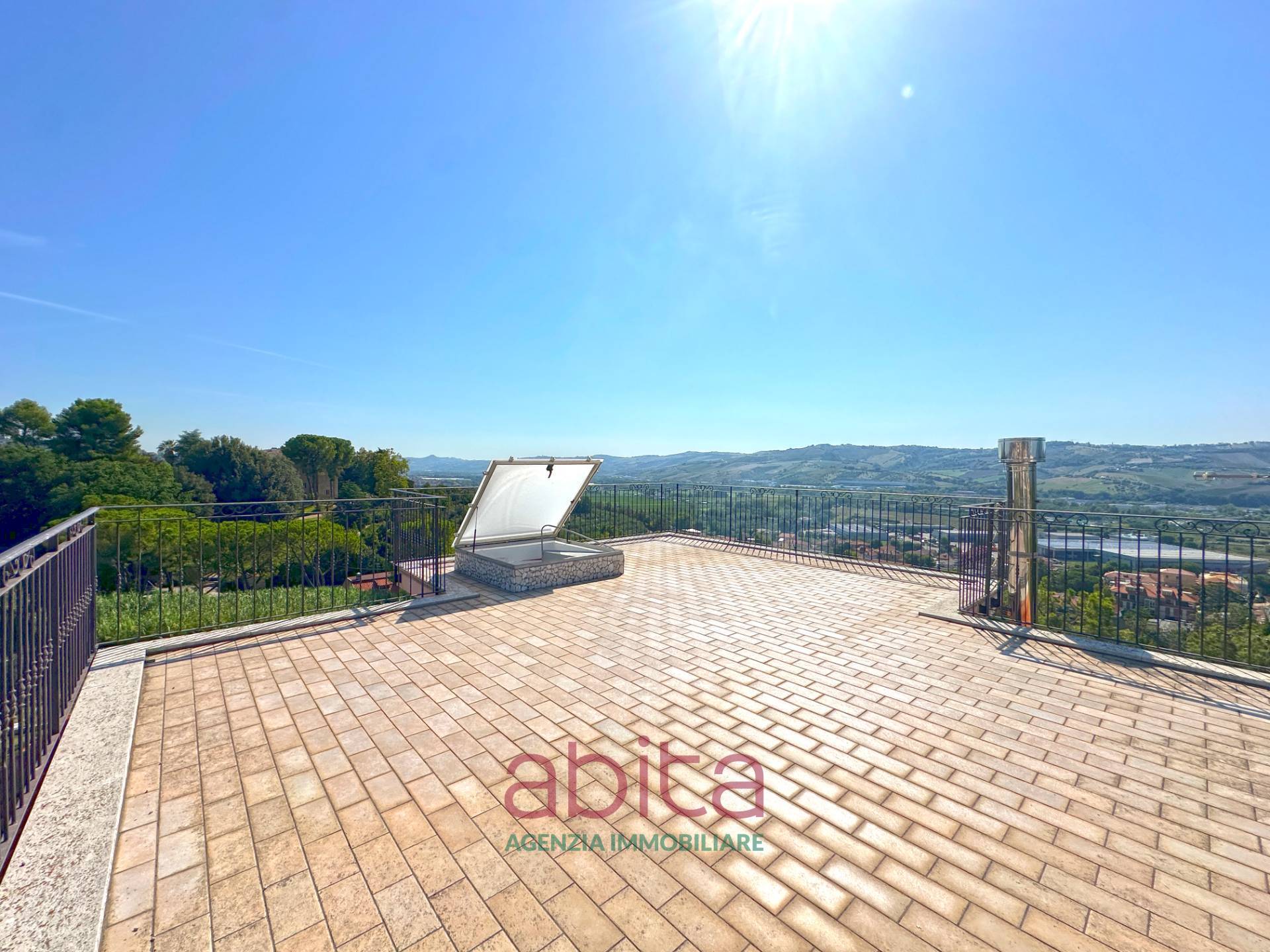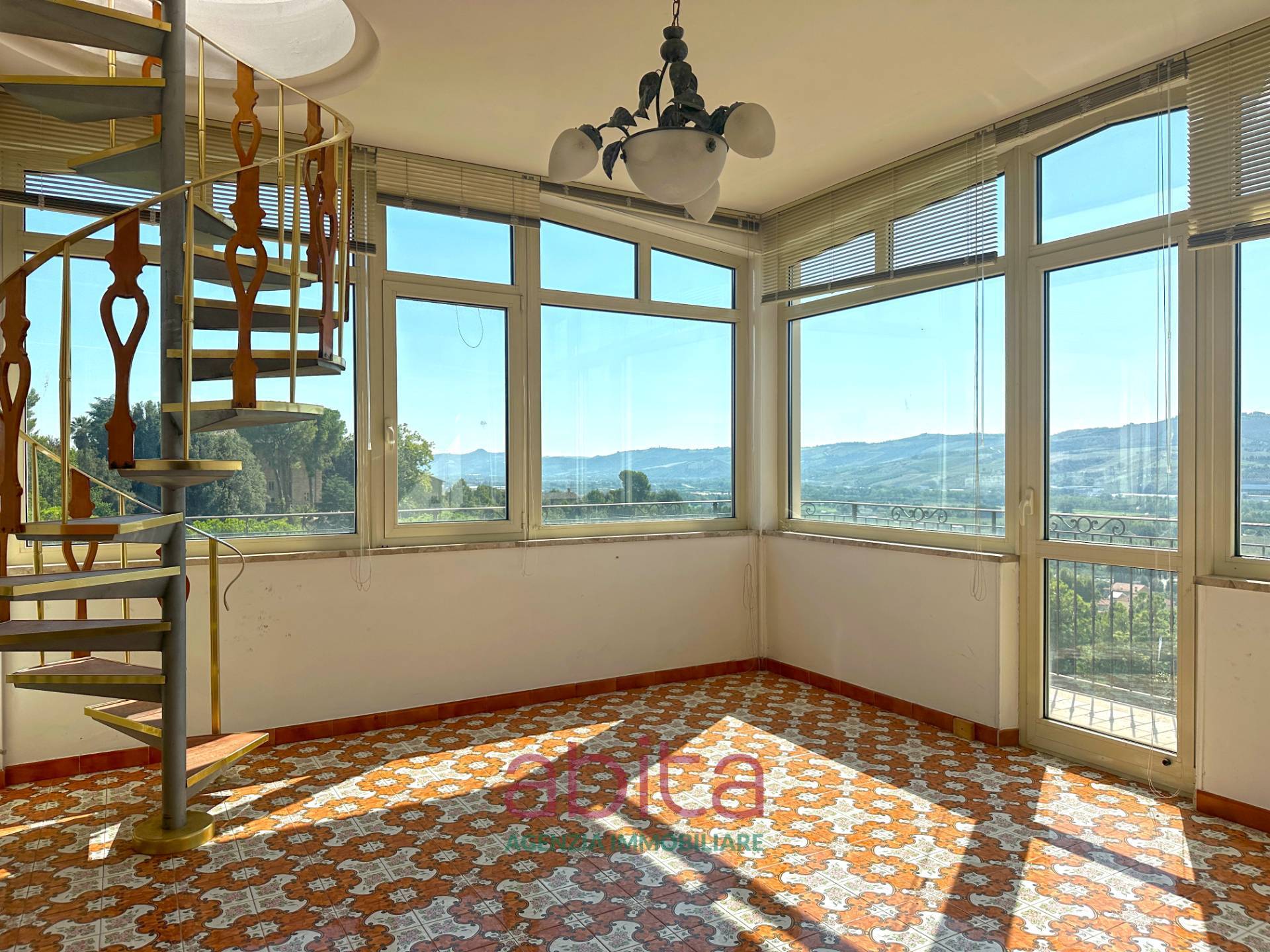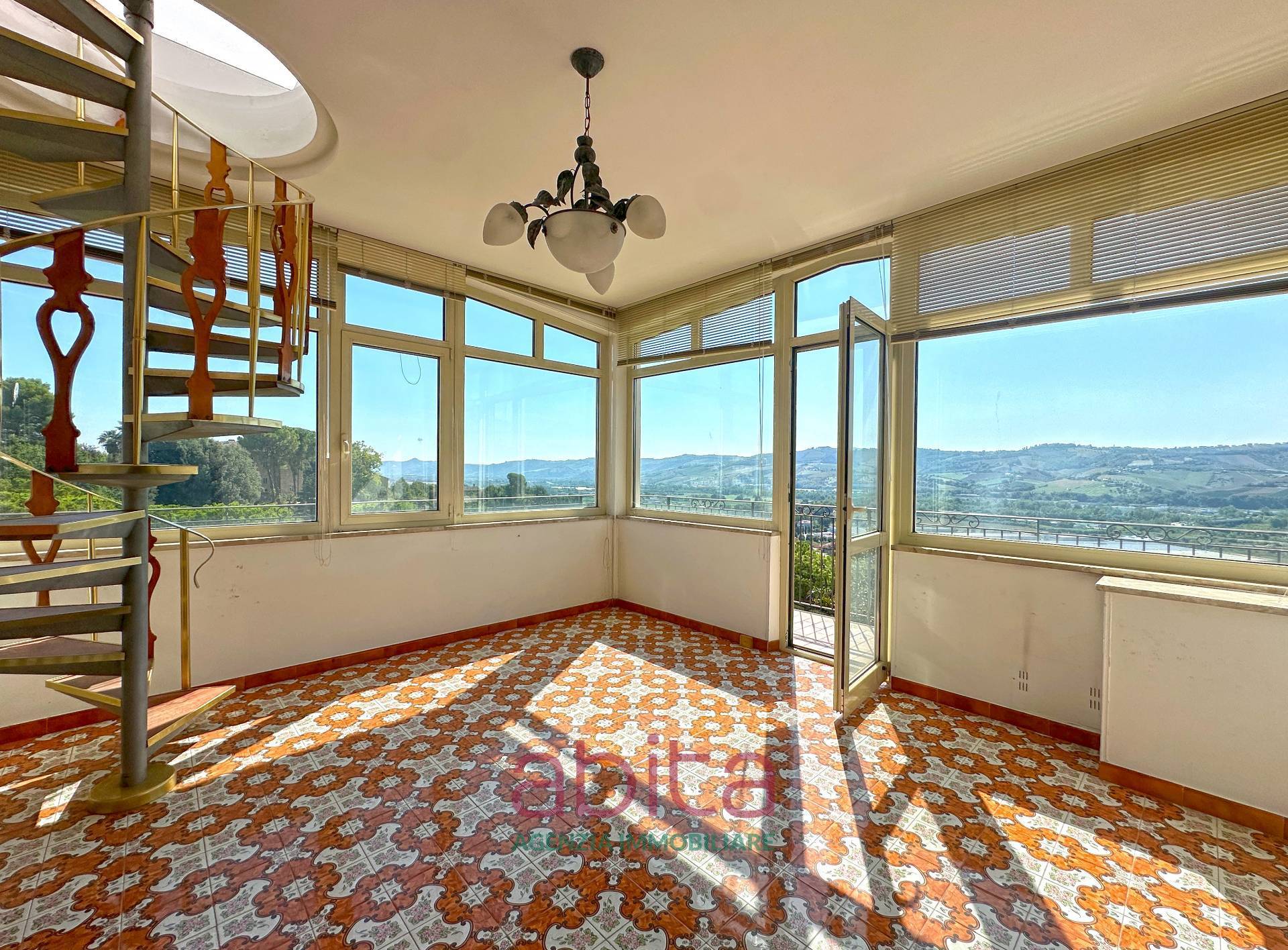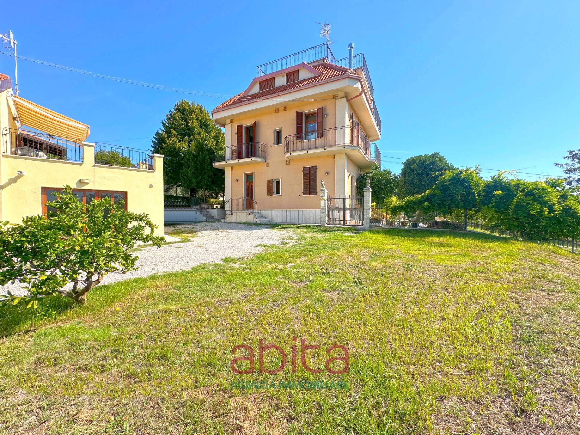 Castel di Lama Villa singola in Vendita con giardino e terreno circostante di 3000 mq. La casa di 240 si sviluppa su tre piani per un di circa 80 mq ciascuno. Piano terra 3 stanze oltre cucina e bagno, piano primo 3 camere e bagno, piano secondo soffitta mansardato, 3 stanze e bagno. Botola di accesso al tetto, terrazzo lastrico di copertura di cui si gode di una vista unica su tutta la vallata. Garage e cantina compresi nella Vendita si trovano al piano terra del fabbricato confinante.