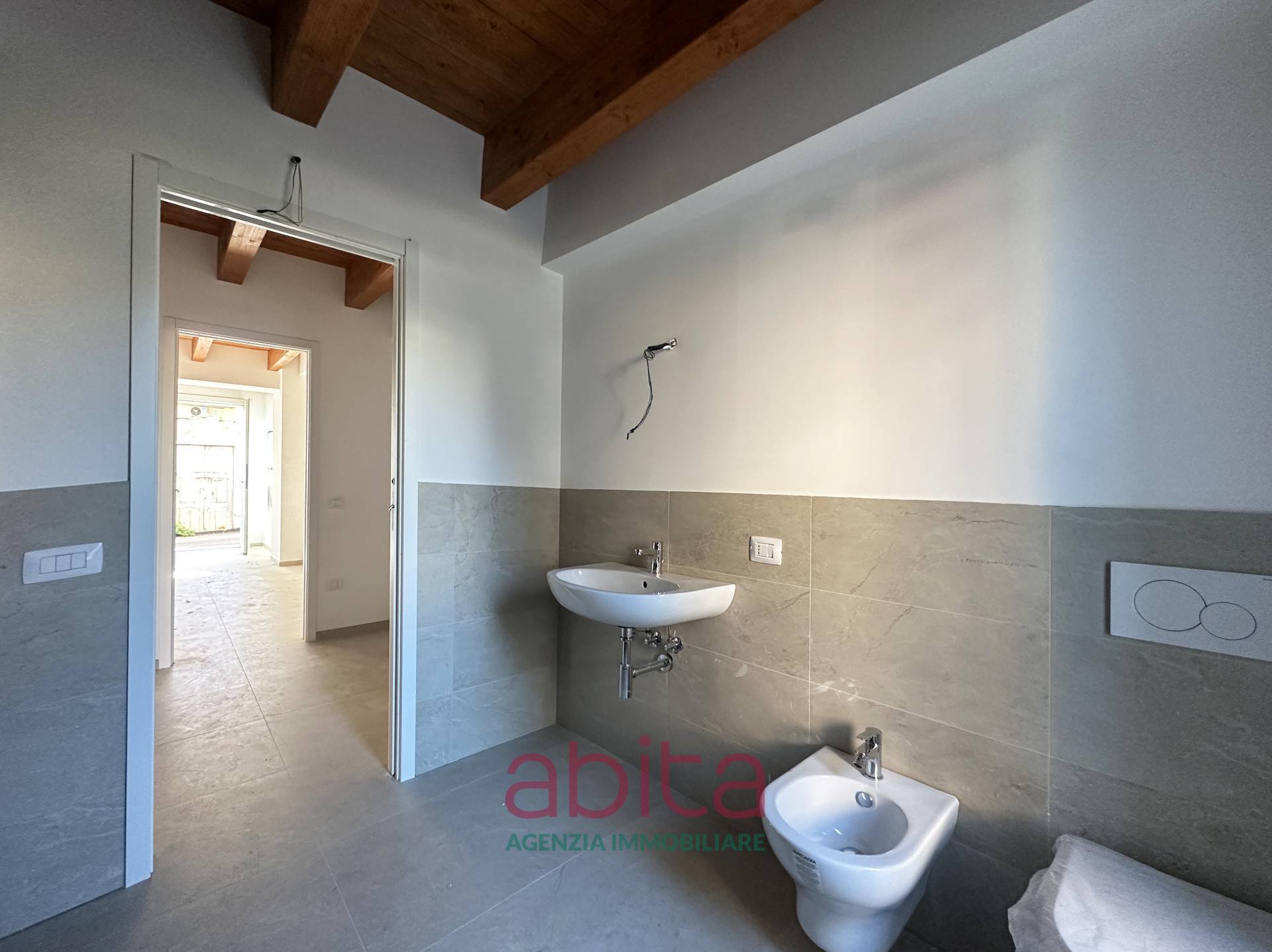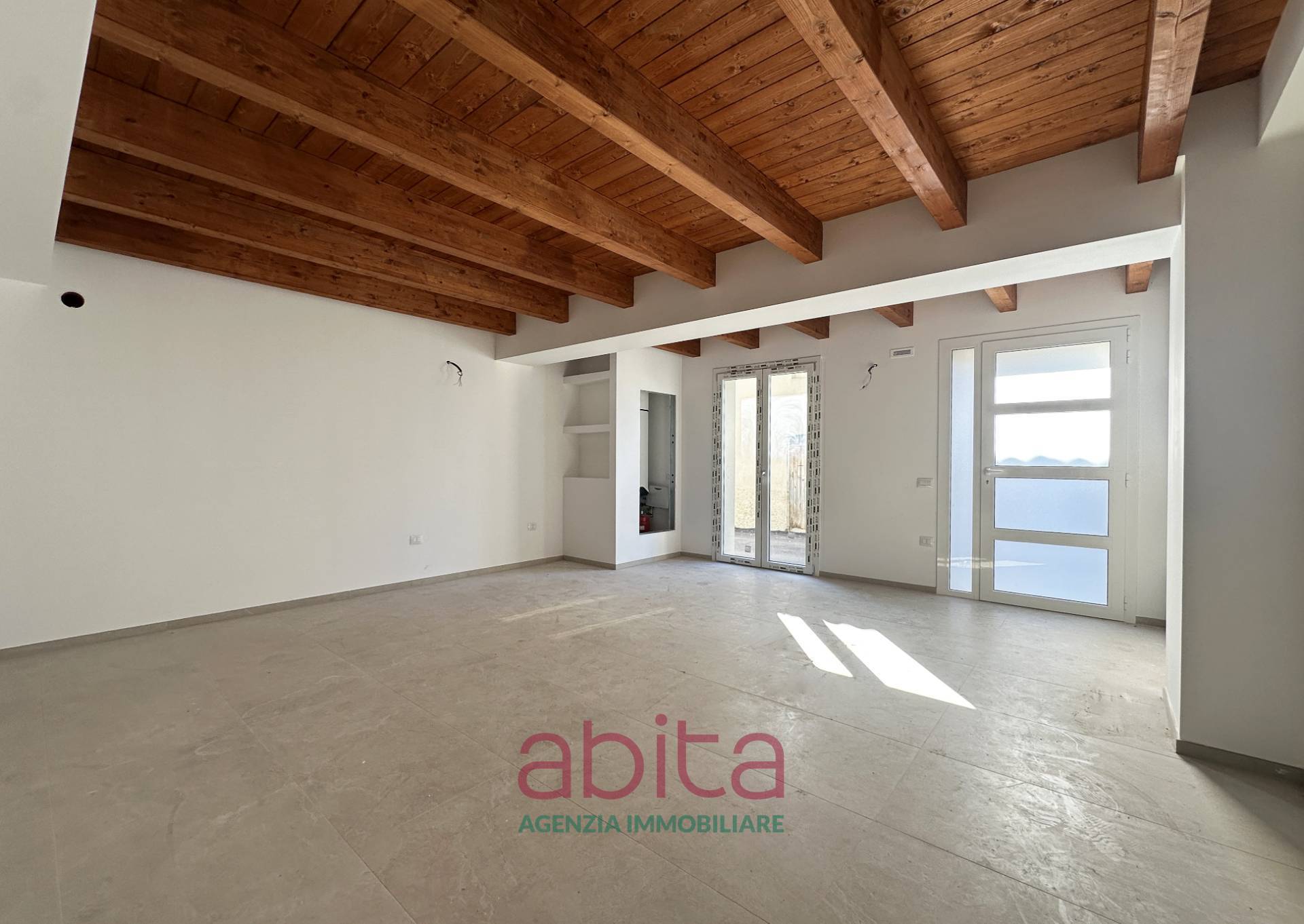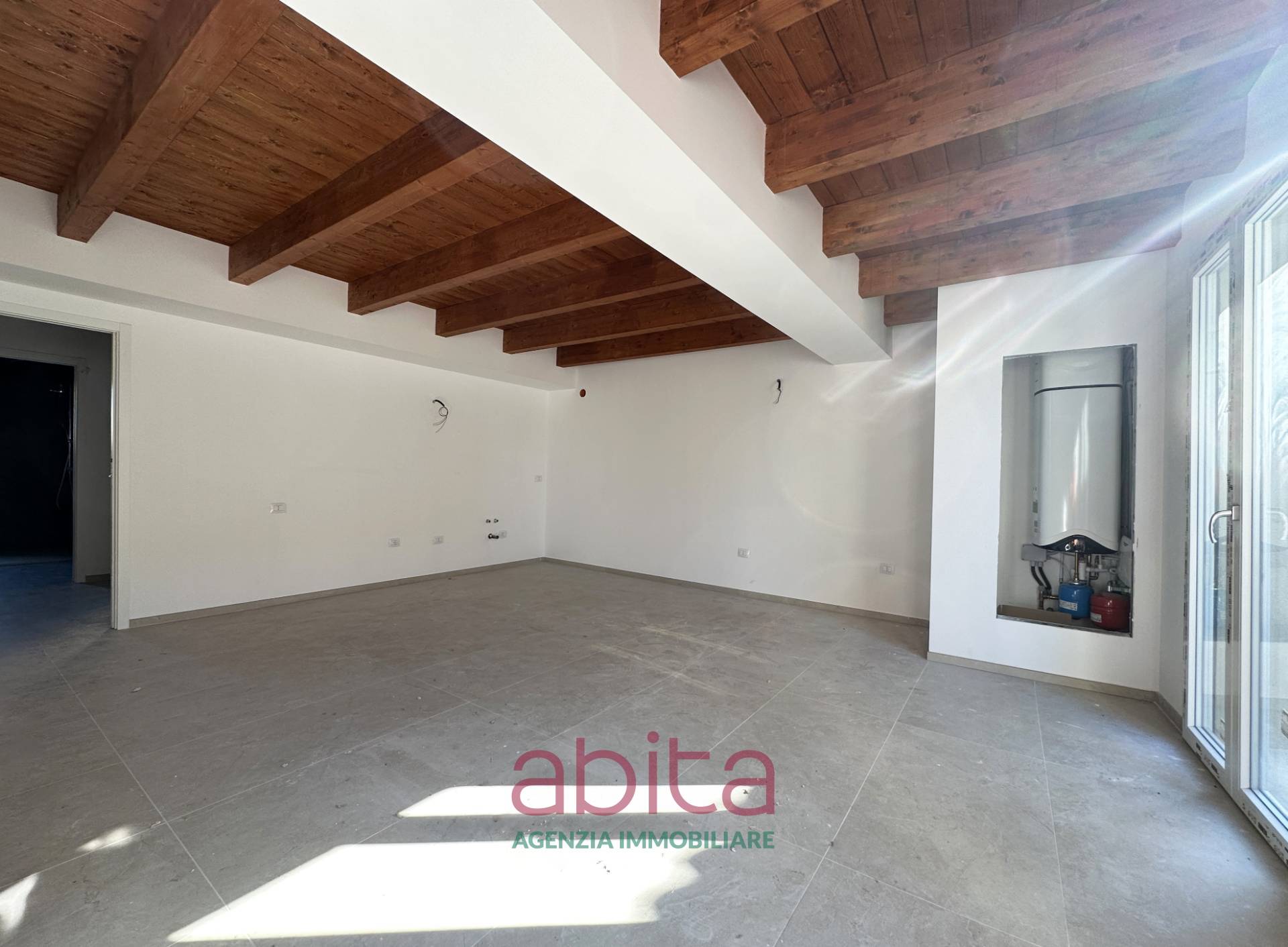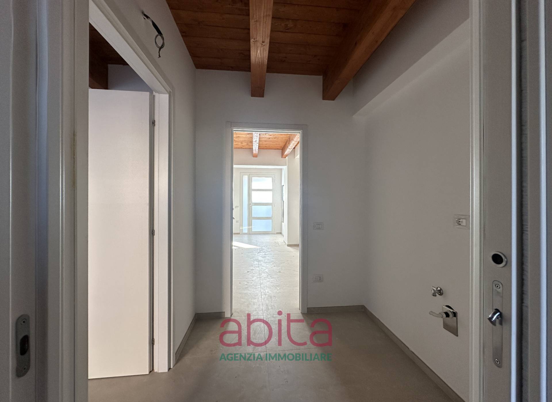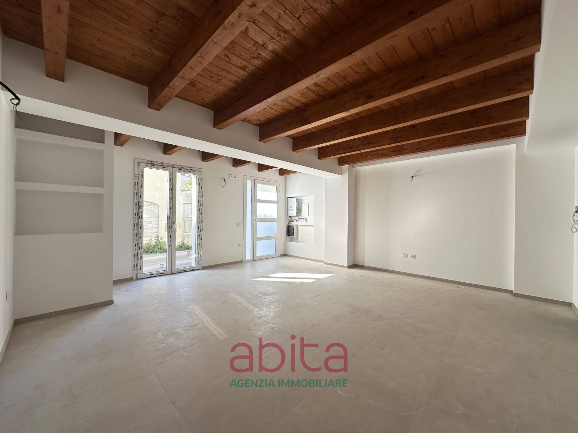 Castel di Lama Piattoni, Appartamento in Vendita al piano terra, con ingresso indipendente. La casa è di nuova costruzione, di 70 mq circa di nuova costruzione. Ingresso su soggiorno con zona cucina, camera e bagno. Nuovo mai abitato, il soffitto è in travi di legno a vista, classe energetica A.