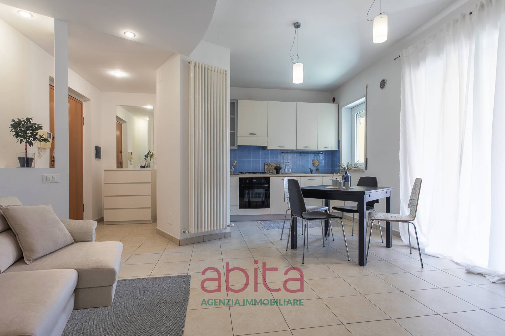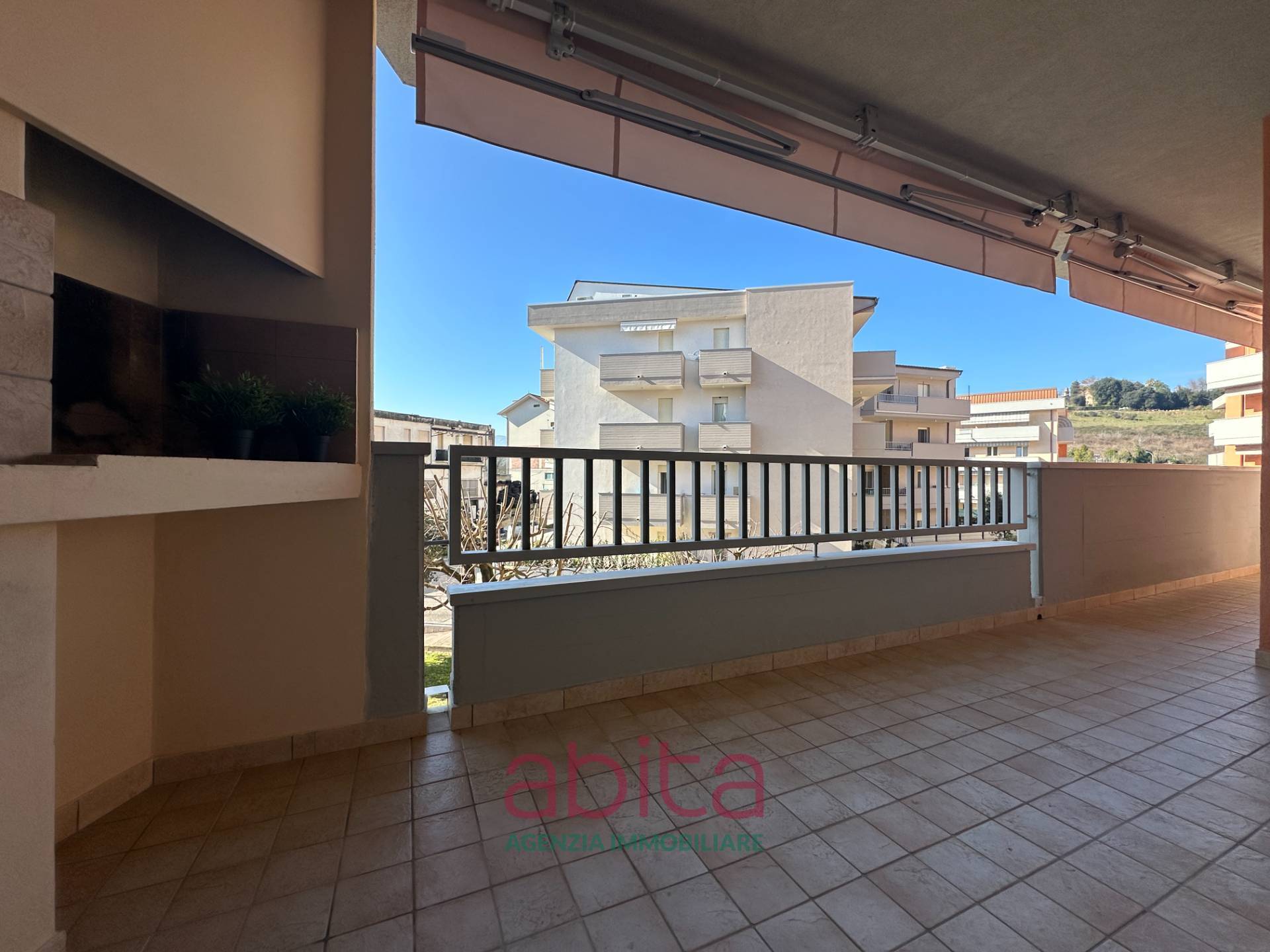 A pochi km da Castel di Lama in zona San Silvestro di Castorano in Vendita Appartamento in CLASSE A con terrazzo, ascensore e garage. E' composto da soggiorno con angolo cucina, ampio balcone coperto, con angolo barbecue, reparto notte completamente in parquet con 2 camere e 2 bagni. Locale magazzino accessibile con l'auto con serranda di 32 mq al piano interrato. Arredato. Caldaia a condensazione, infissi pvc a taglio termico e tende nuove.