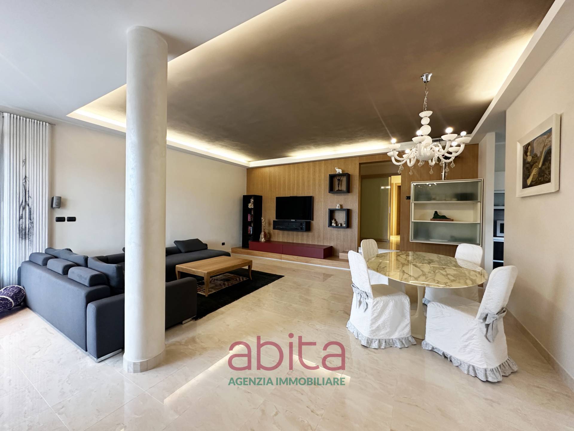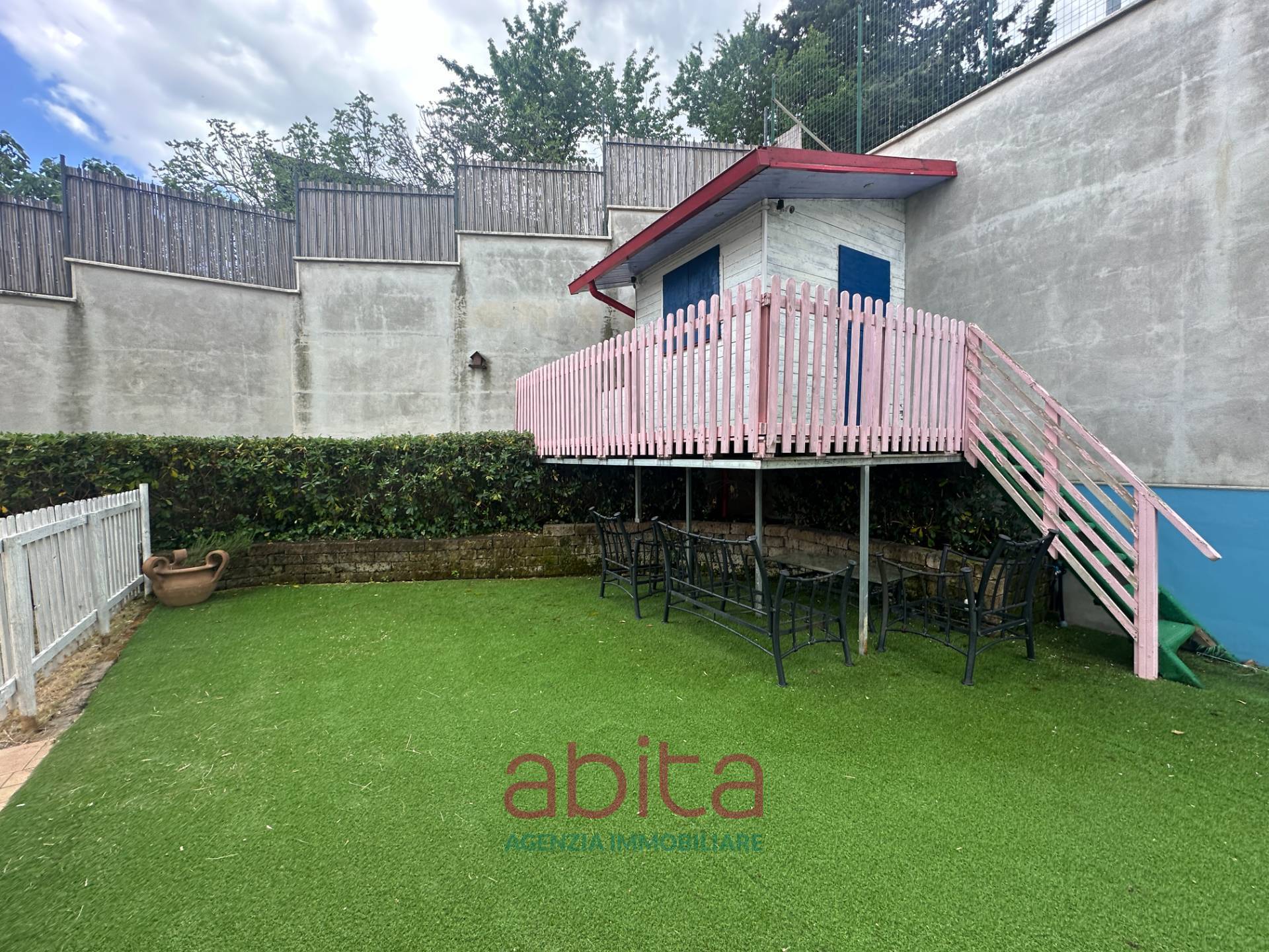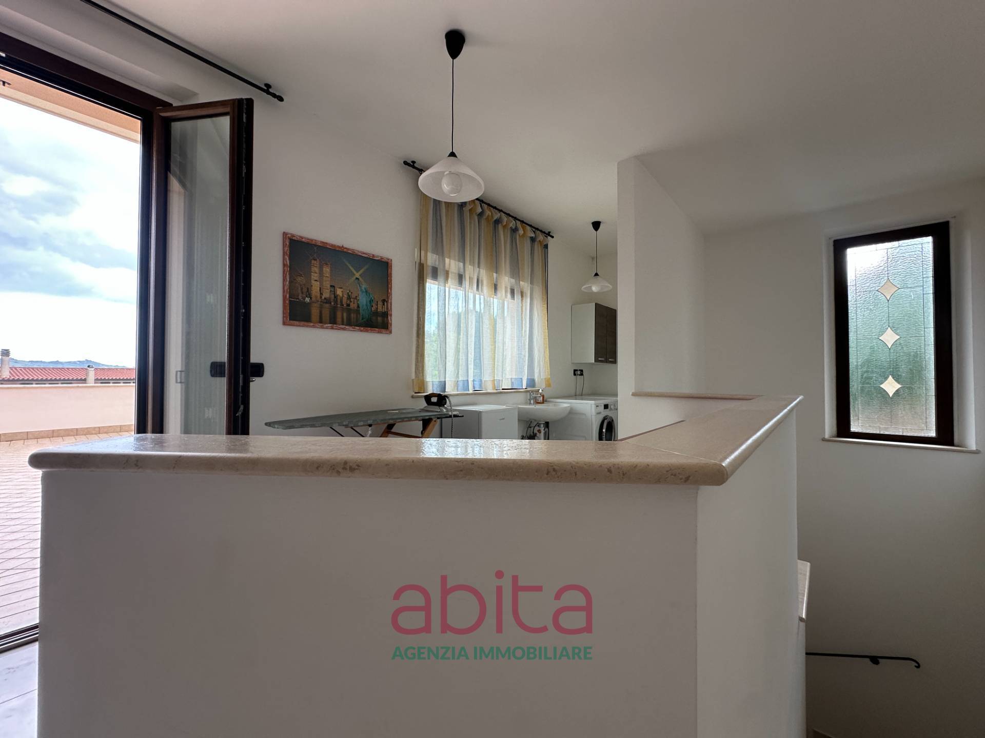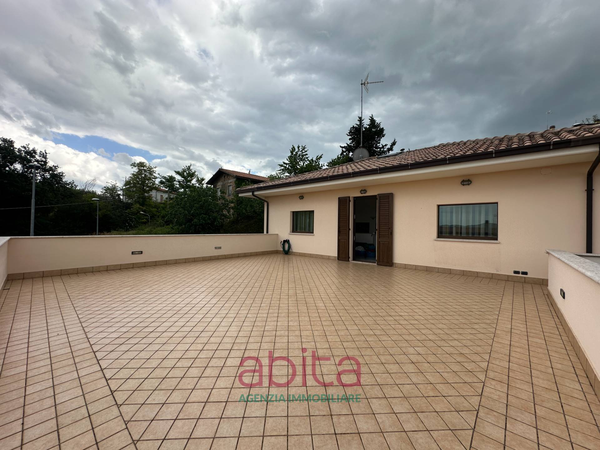Primo piano con 80 mq altro soggiorno con angolo cottura, 2 camere matrimoniali, bagno e terrazzo di mq. 50. Possibilità di essere divisa facilmente in due appartamenti indipendenti.