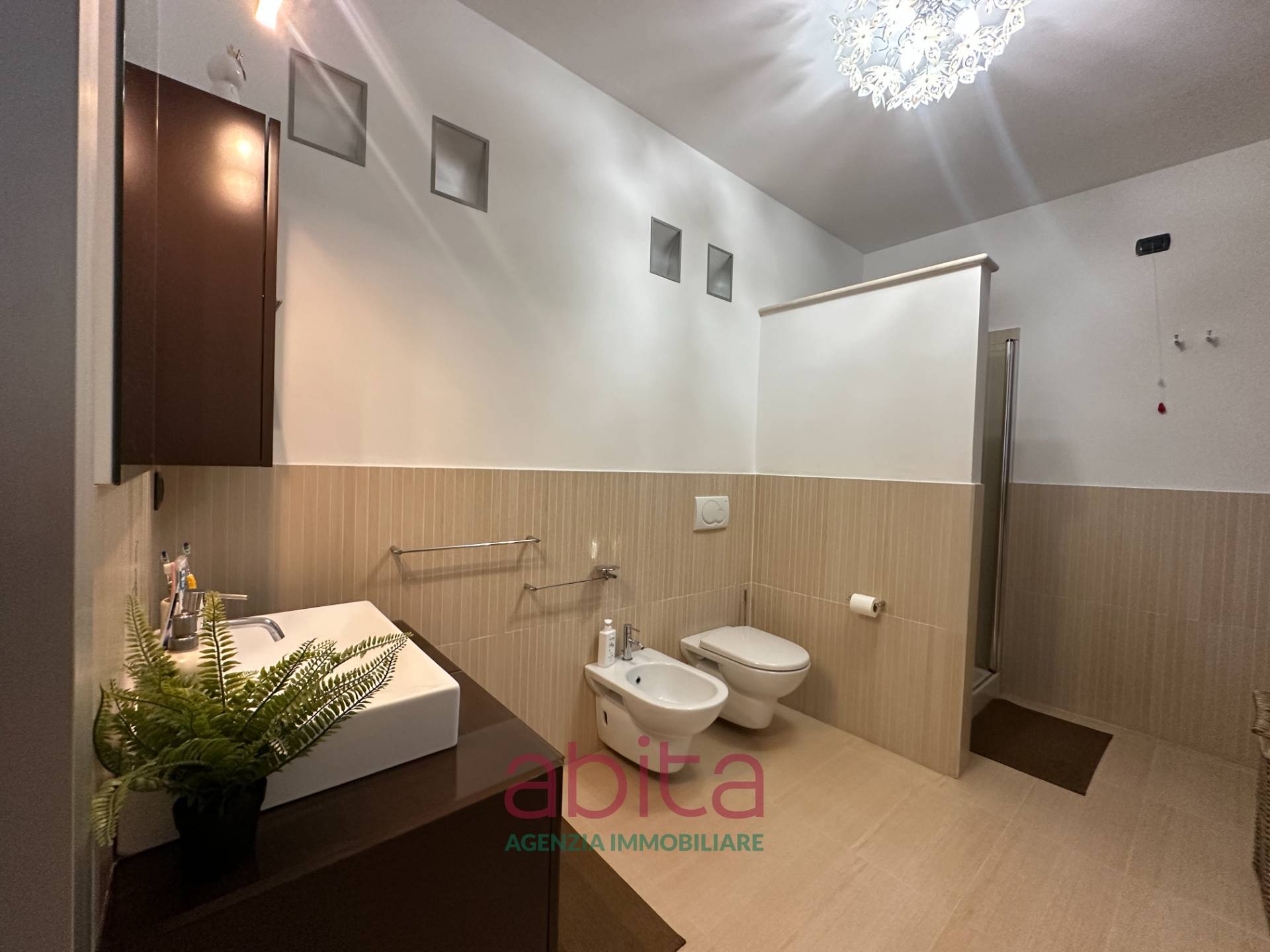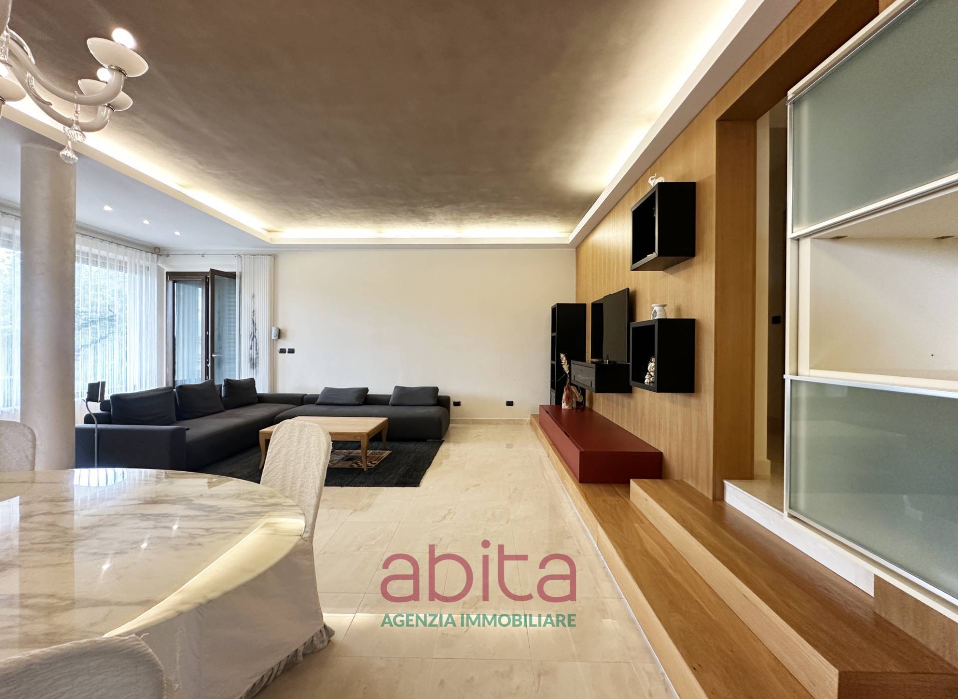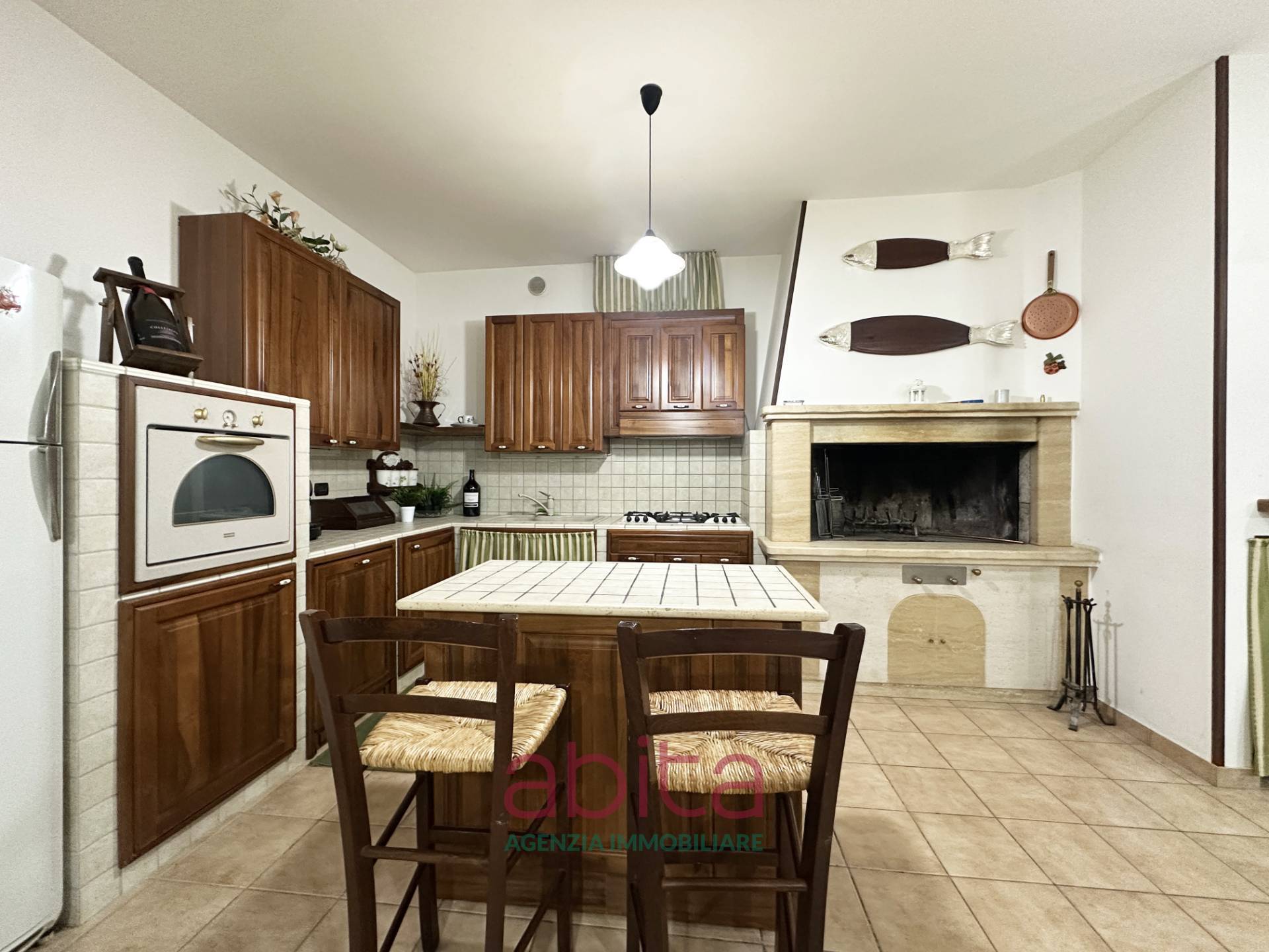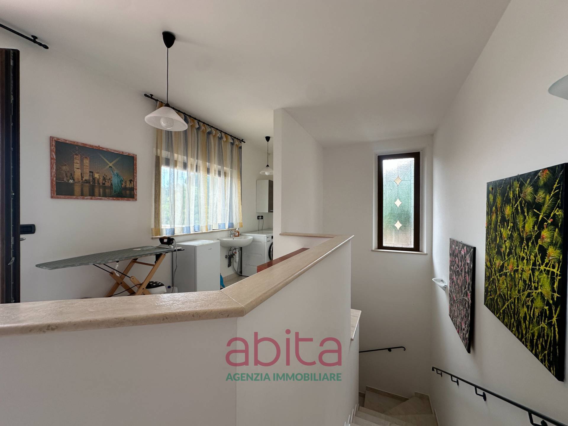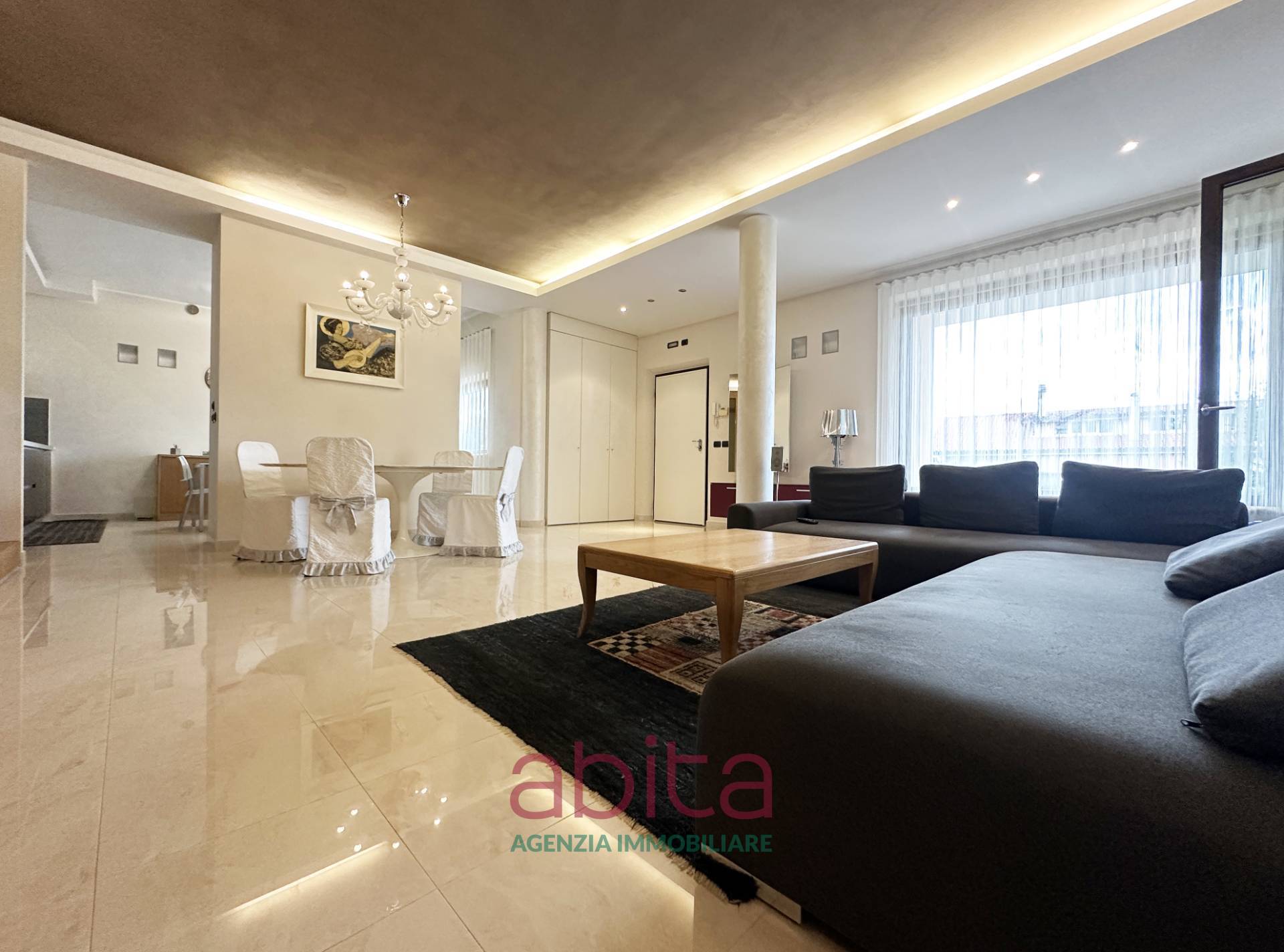Primo piano con 80 mq altro soggiorno con angolo cottura, 2 camere matrimoniali, bagno e terrazzo di mq. 50. Possibilità di essere divisa facilmente in due appartamenti indipendenti.