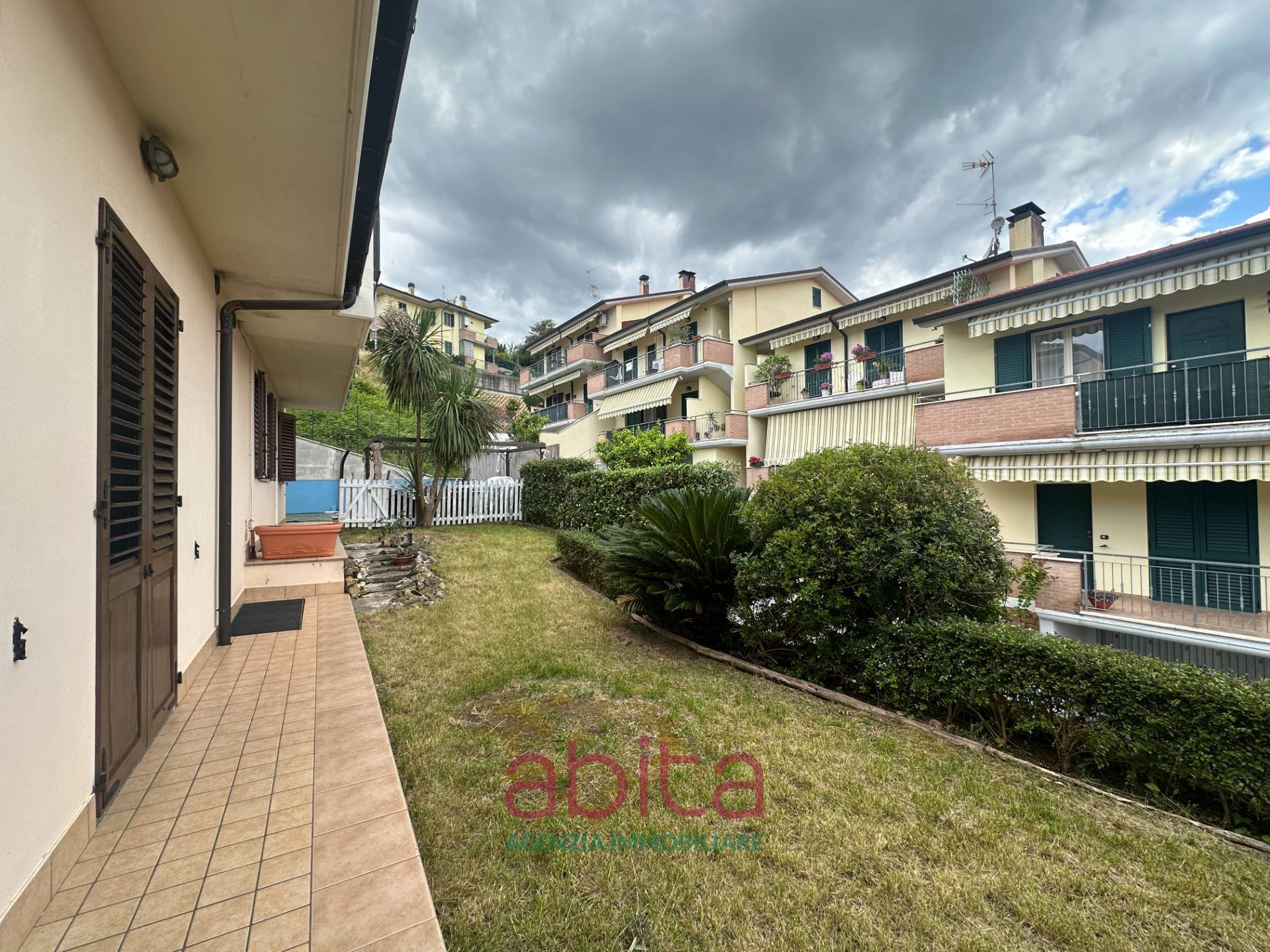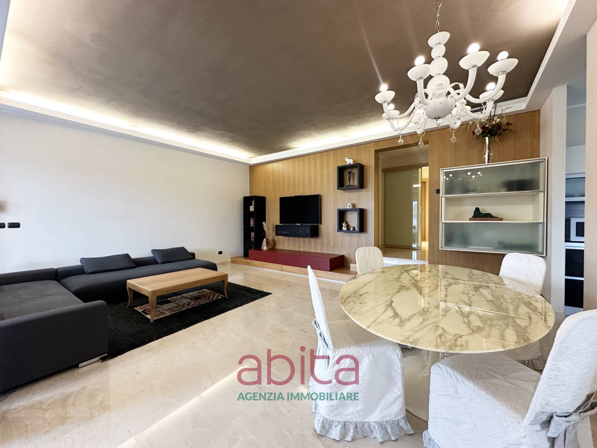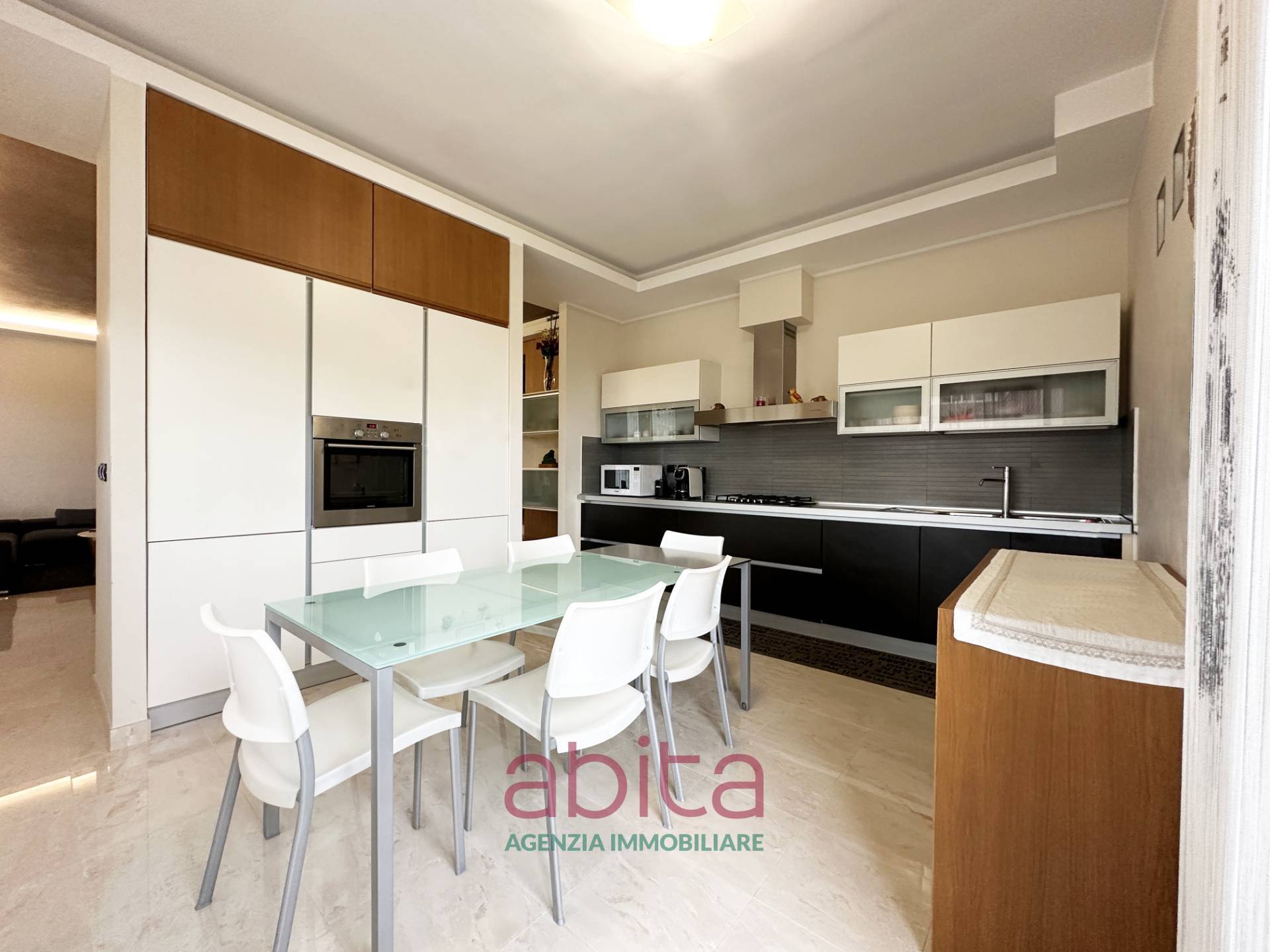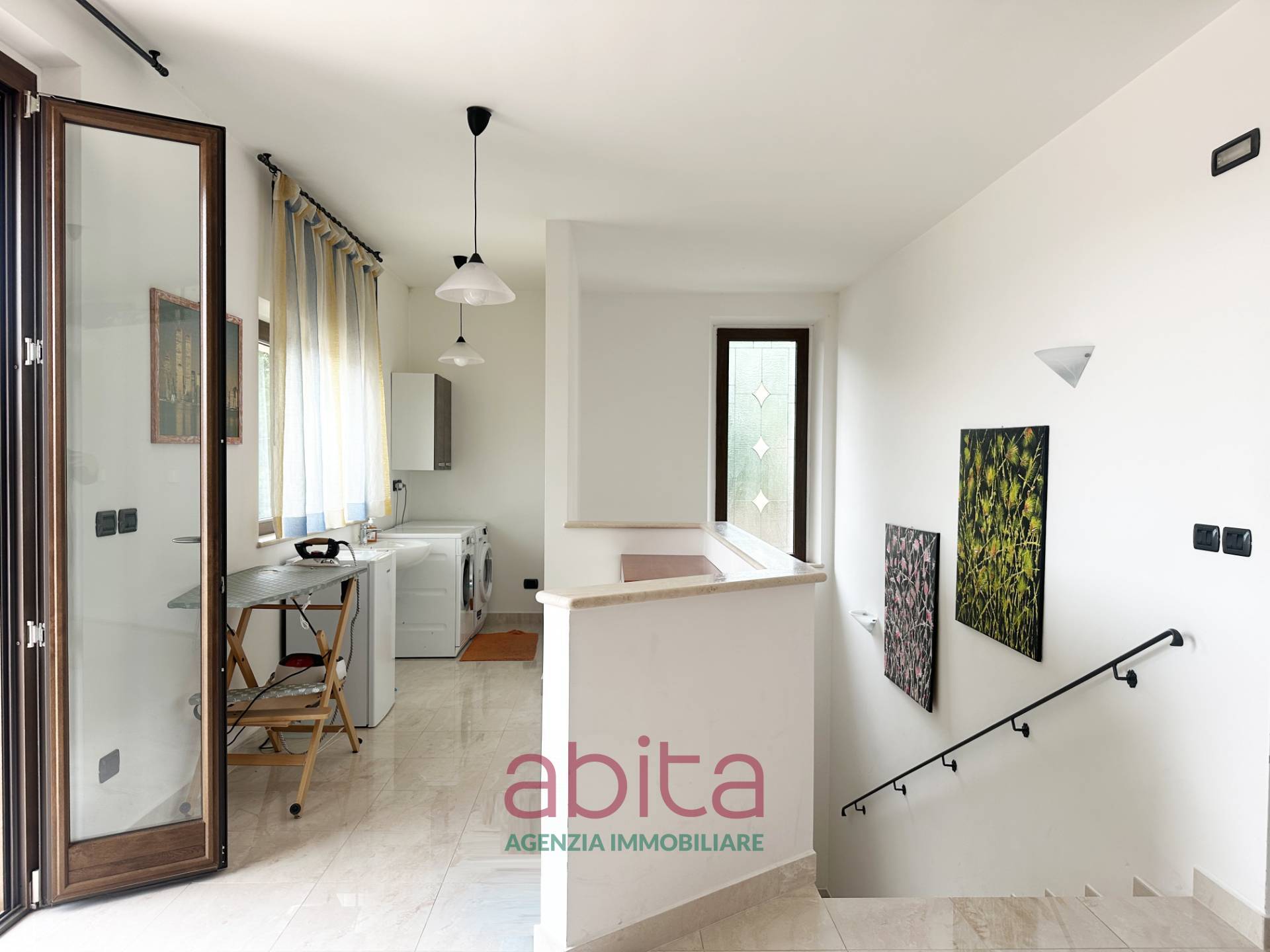 Primo piano con 80 mq altro soggiorno con angolo cottura, 2 camere matrimoniali, bagno e terrazzo di mq. 50. Possibilità di essere divisa facilmente in due appartamenti indipendenti.