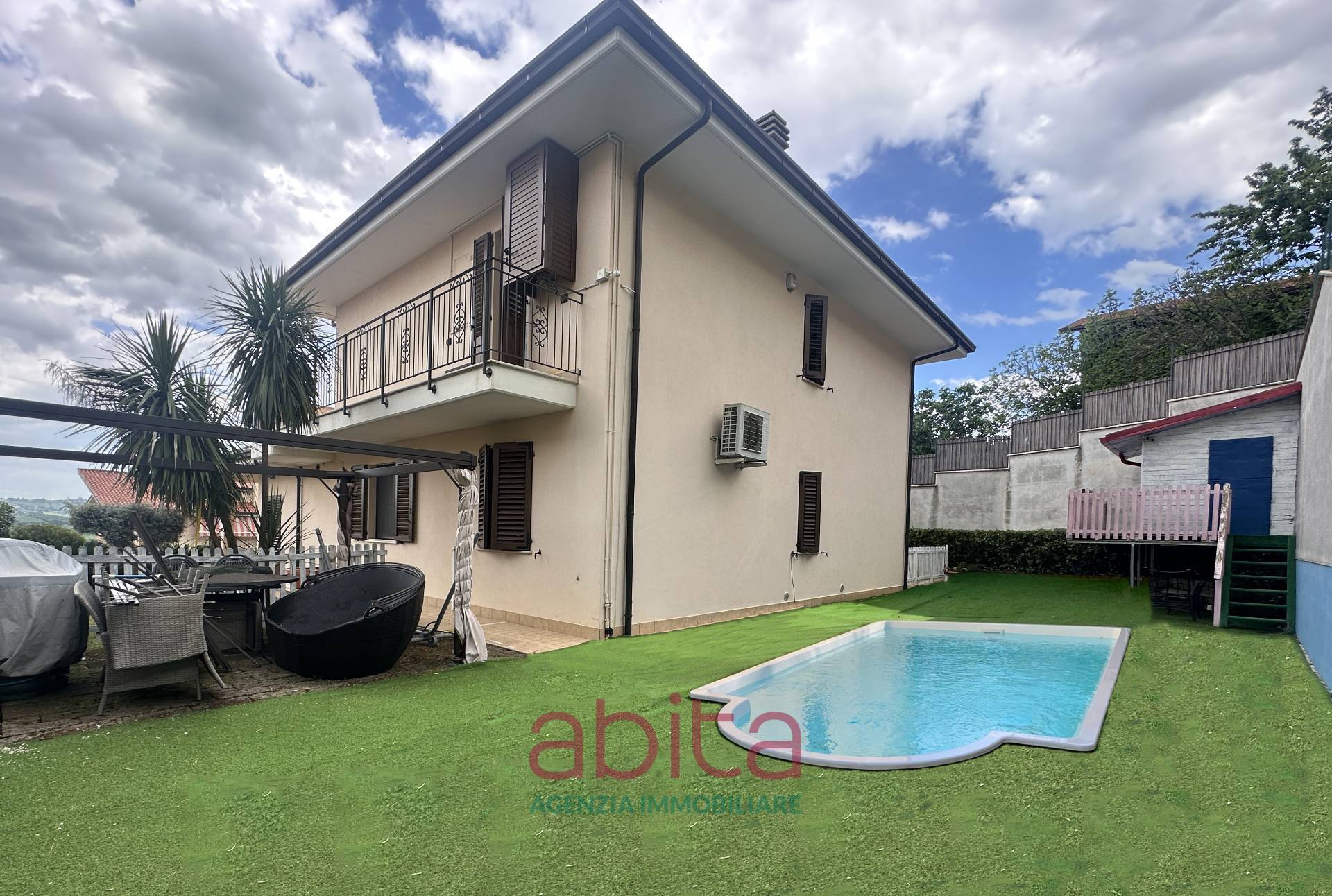 Spinetoli, Villa con piscina e giardino in Vendita. 400 mq con zona giorno, soggiorno, cucina, due camere, due bagni, rustico seminterrato di mq. 150 circa con cantine e bagno-