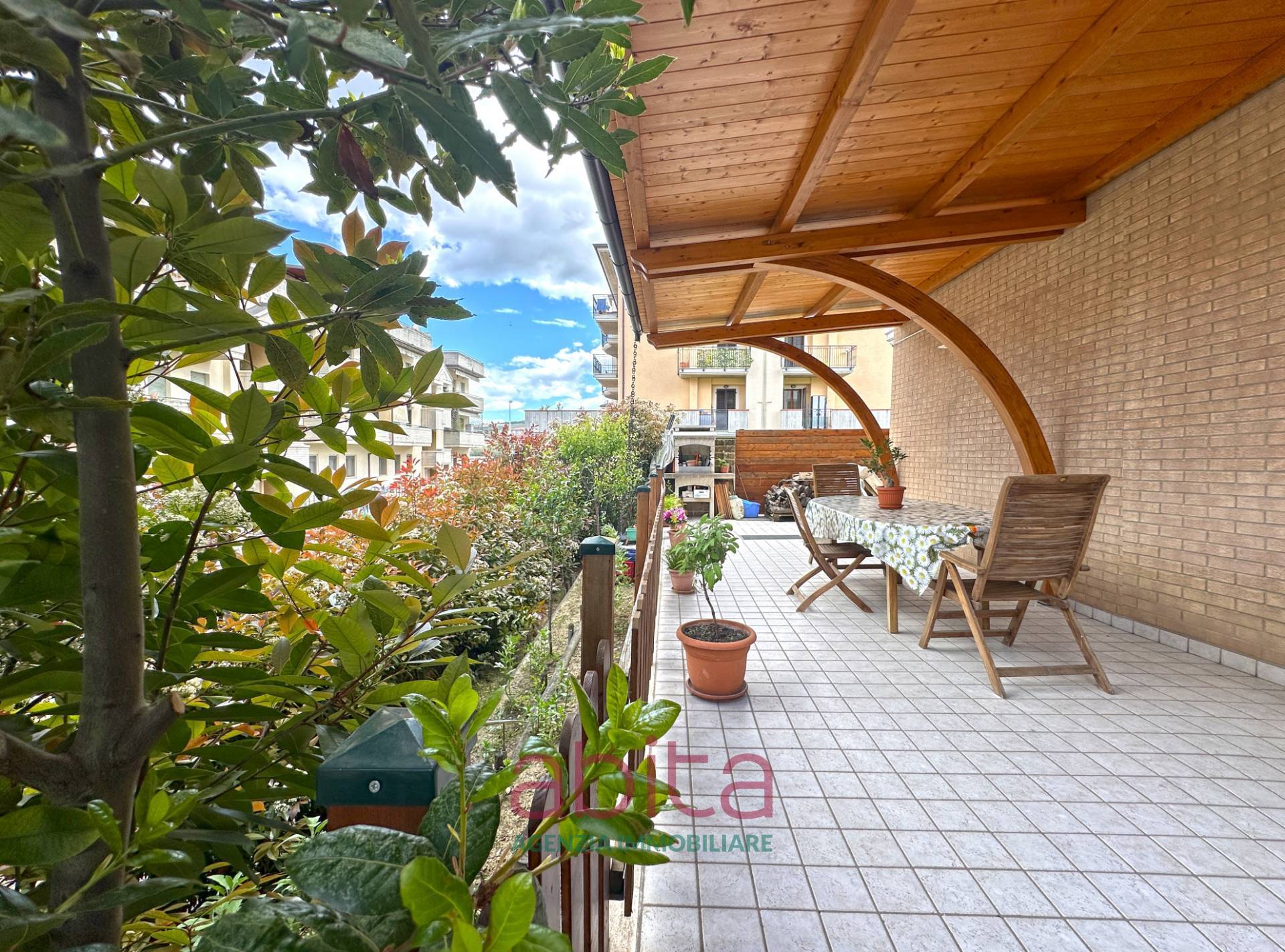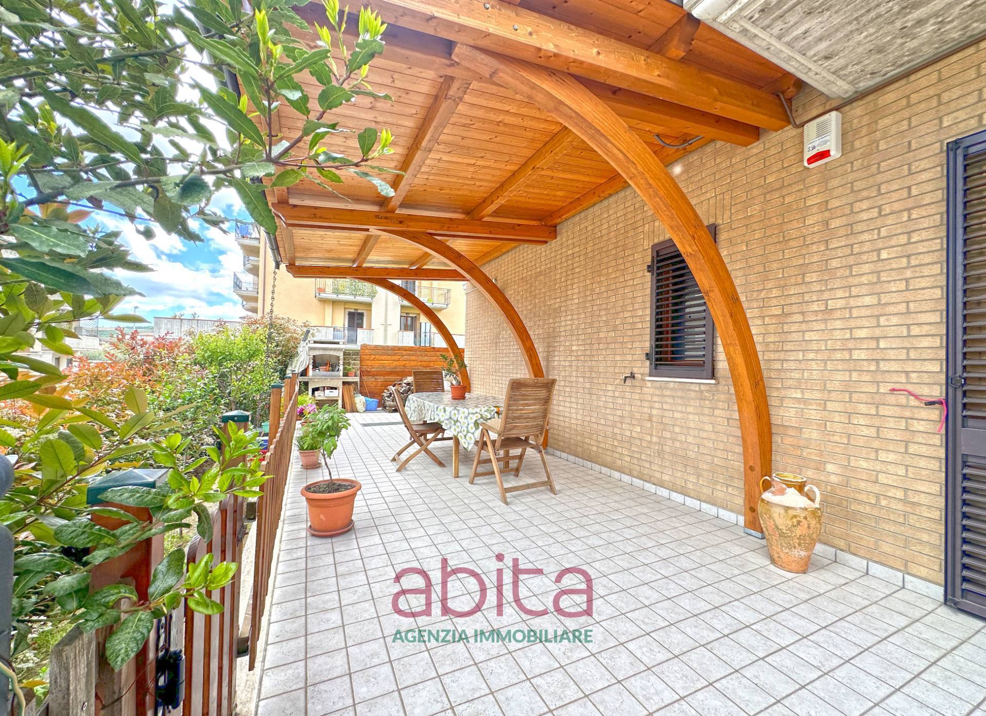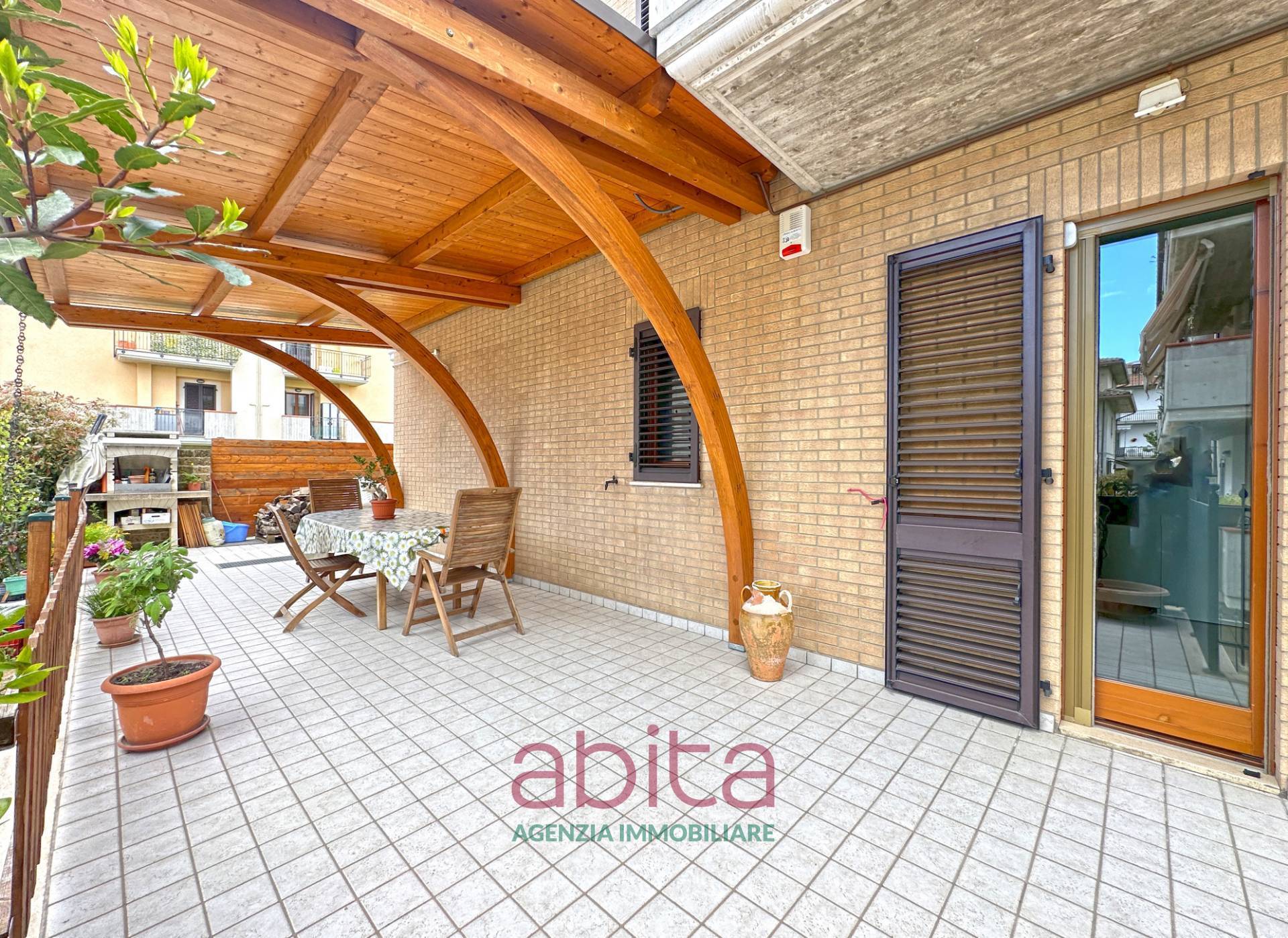 Pagliare del Tronto di Spinetoli, Appartamento in Vendita con ingresso indipendente e giardino, Pergola in legno, piano terra La casa è composta da ingresso su soggiorno con cucina a vista, disimpegno, 3 camere e 2 bagni. Spazio esterno di 93 mq circa in parte pavimentato in parte a giardino dotato di pergola con fotovoltaico, lavello, prese lavatrice e gas e Barbecue fisso. Posto auto esterno esclusivo. Garage di 27 mq pavimentato. Posto in una piccola palazzina di recente costruzione ad un passo dalla pista ciclopedonale che si snoda lungo i territori dei comuni della Vallata del Tronto fino al mare.