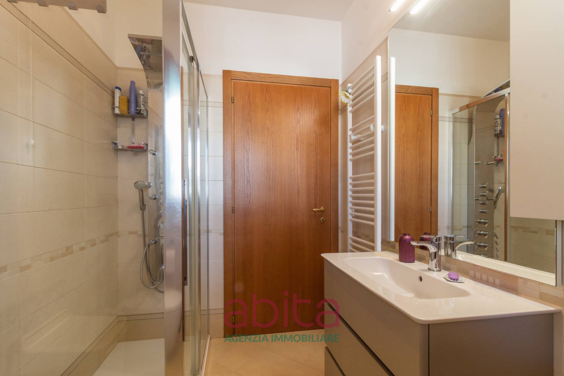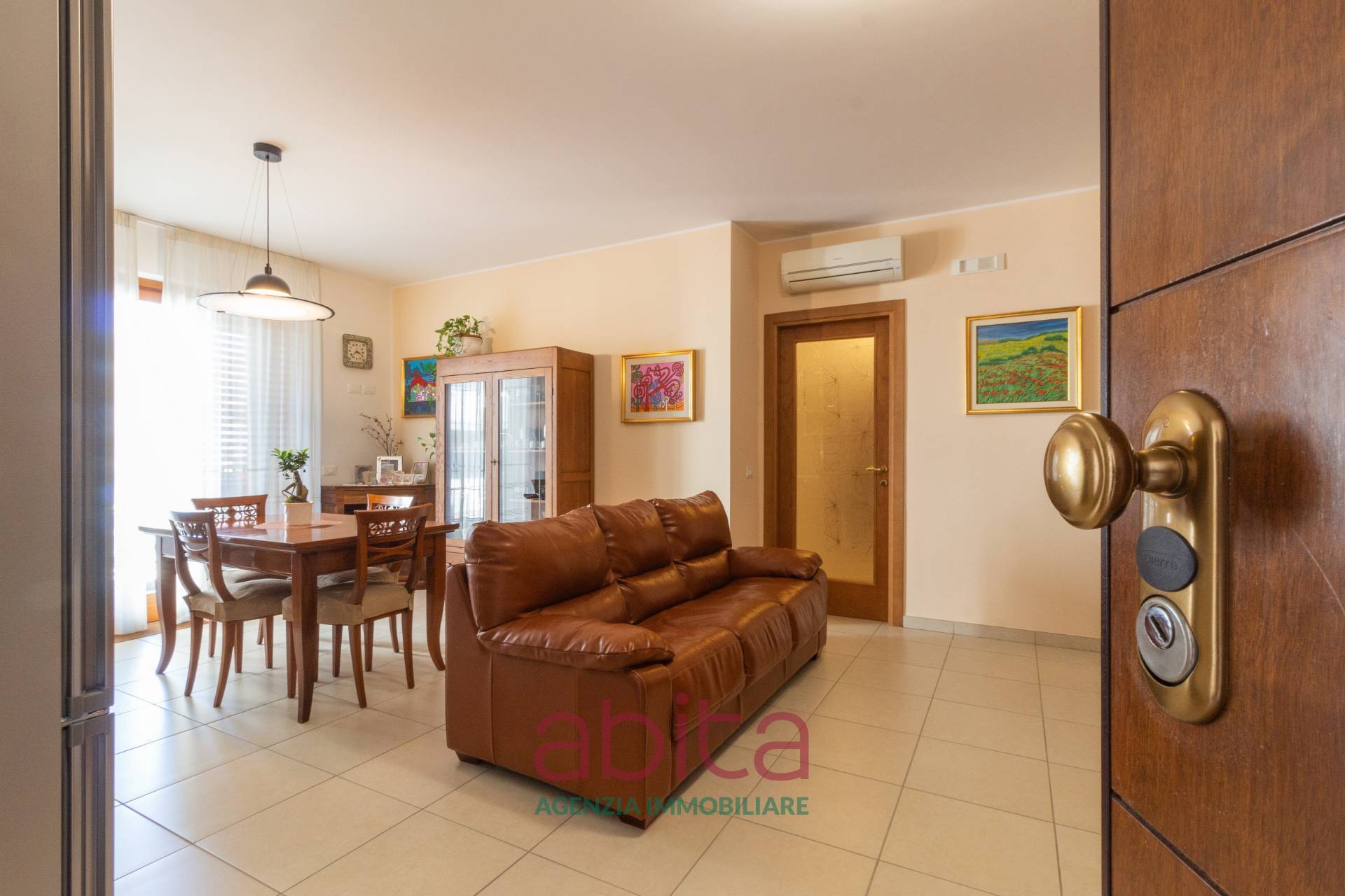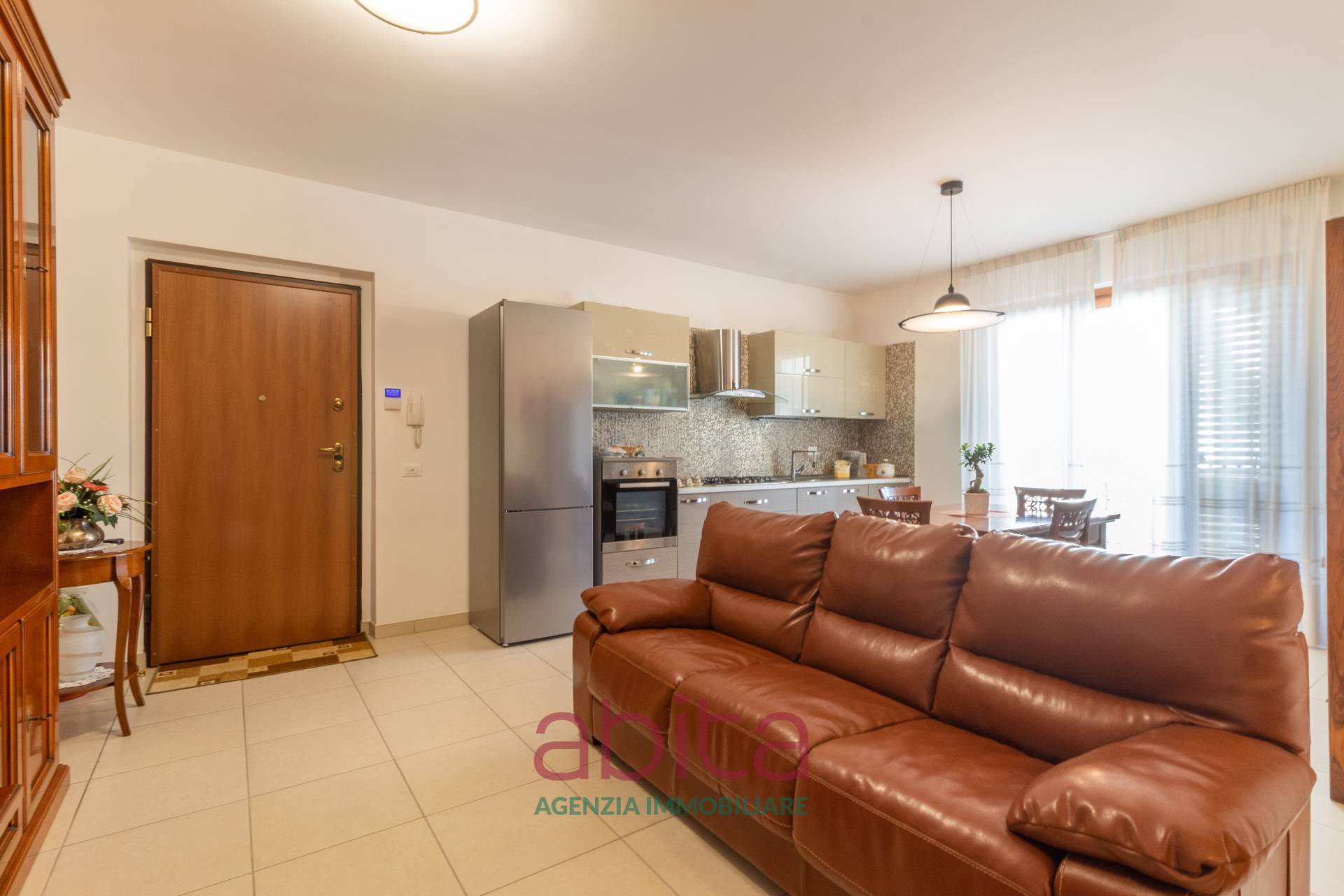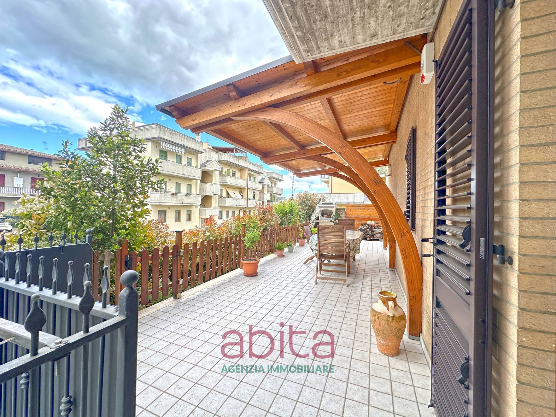 Pagliare del Tronto di Spinetoli, Appartamento in Vendita con ingresso indipendente e giardino, Pergola in legno, piano terra La casa è composta da ingresso su soggiorno con cucina a vista, disimpegno, 3 camere e 2 bagni. Spazio esterno di 93 mq circa in parte pavimentato in parte a giardino dotato di pergola con fotovoltaico, lavello, prese lavatrice e gas e Barbecue fisso. Posto auto esterno esclusivo. Garage di 27 mq pavimentato. Posto in una piccola palazzina di recente costruzione ad un passo dalla pista ciclopedonale che si snoda lungo i territori dei comuni della Vallata del Tronto fino al mare.