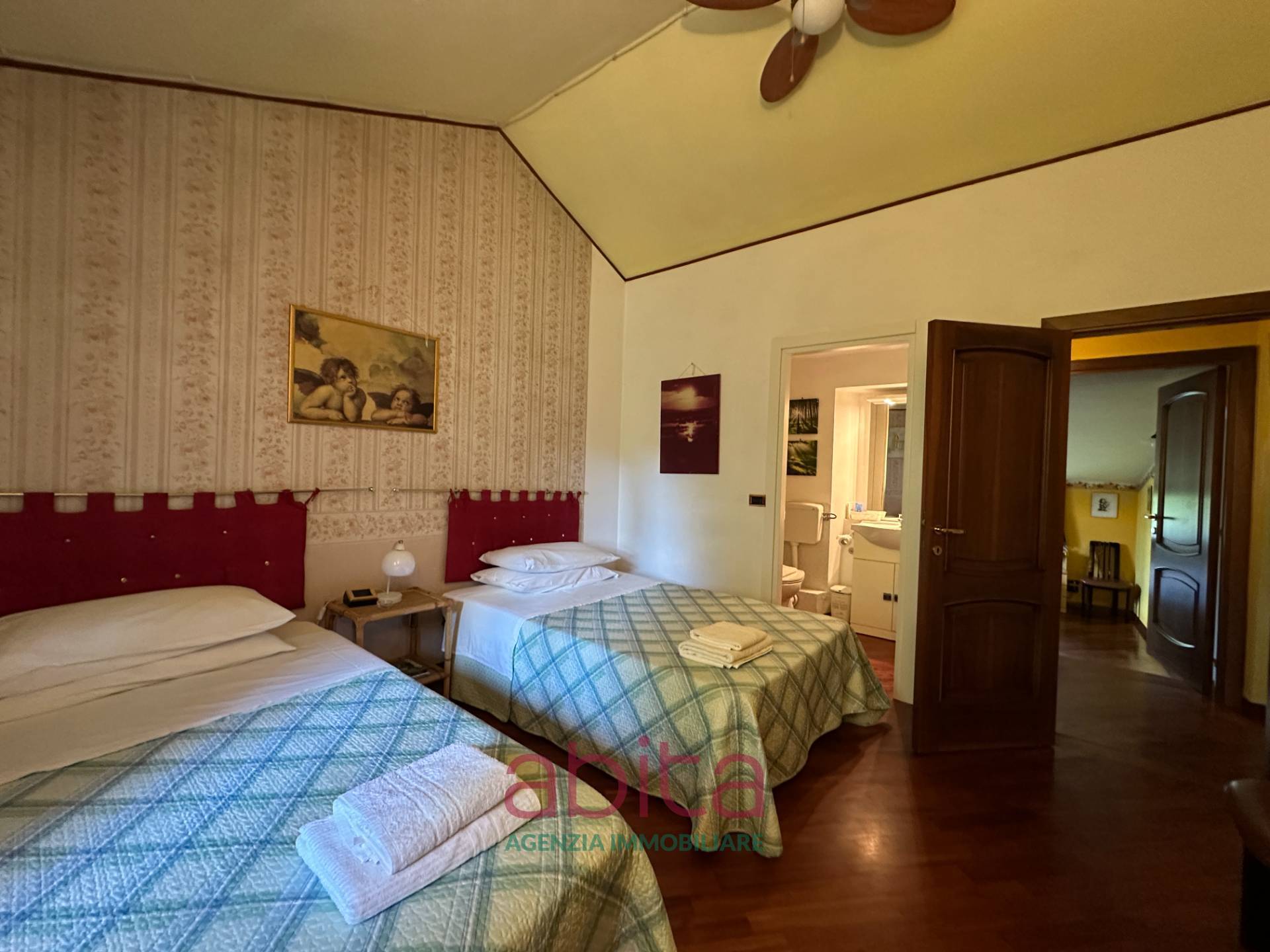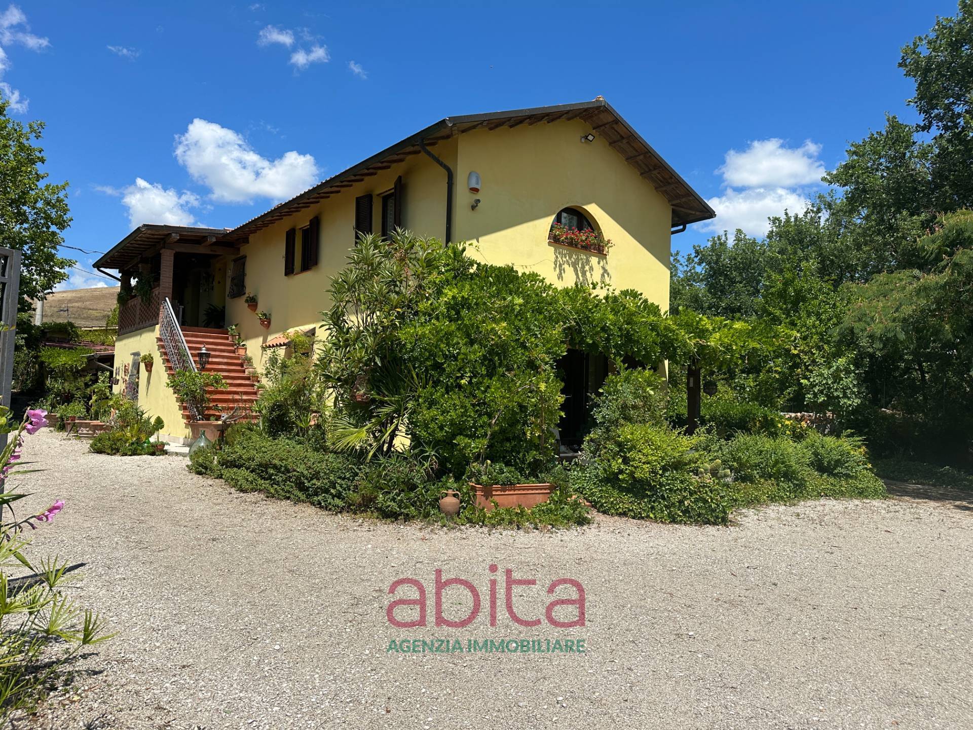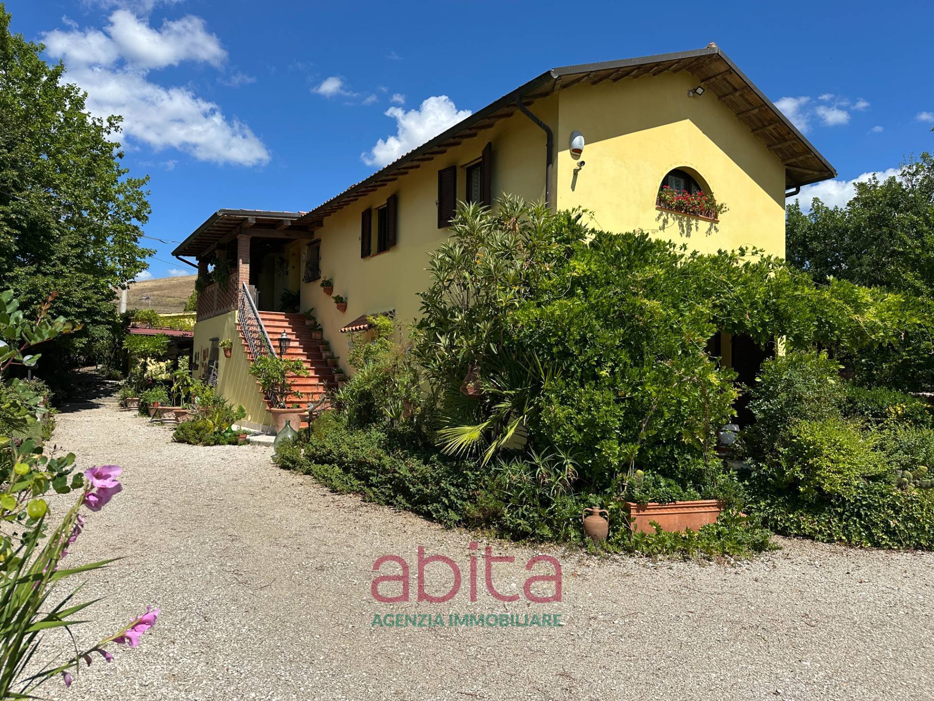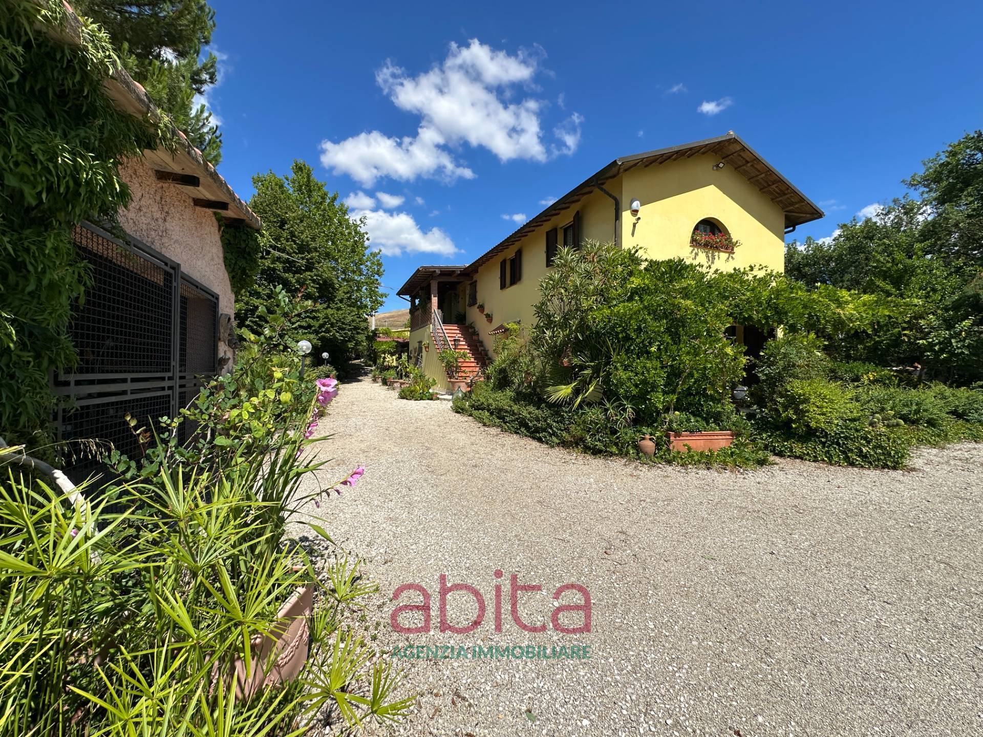 Castel di Lama, rustico casale casolare Villa in Vendita con terreno e giardino. La casa di circa 400 mq è attualmente adibita in parte a B&B bed and breakfast ed è composta dal fabbricato principale disposto su due livelli con doppio ingresso, già suddiviso in due unità abitative e due annessi, uno adibito a garage di oltre 50 mq ed uno a rimessa attrezzi con angolo barbecue. L'immobile dispone complessivamente di 10 stanze di cui 6 camere, 4 bagni, al piano primo e salone di 60 mq circa, cucina, 2 stanze di cui una doppia adibita a studio e sala biliardo al piano terra. Terreno circostante di circa 3000 mq con pozzo di proprietà per irrigazione. Presente una campo da tennis padel da ripristinare. Zona panoramica ma vicina a tutti i servizi a 3 km dall'uscita del raccordo autostradale Ascoli San Benedetto del Tronto.