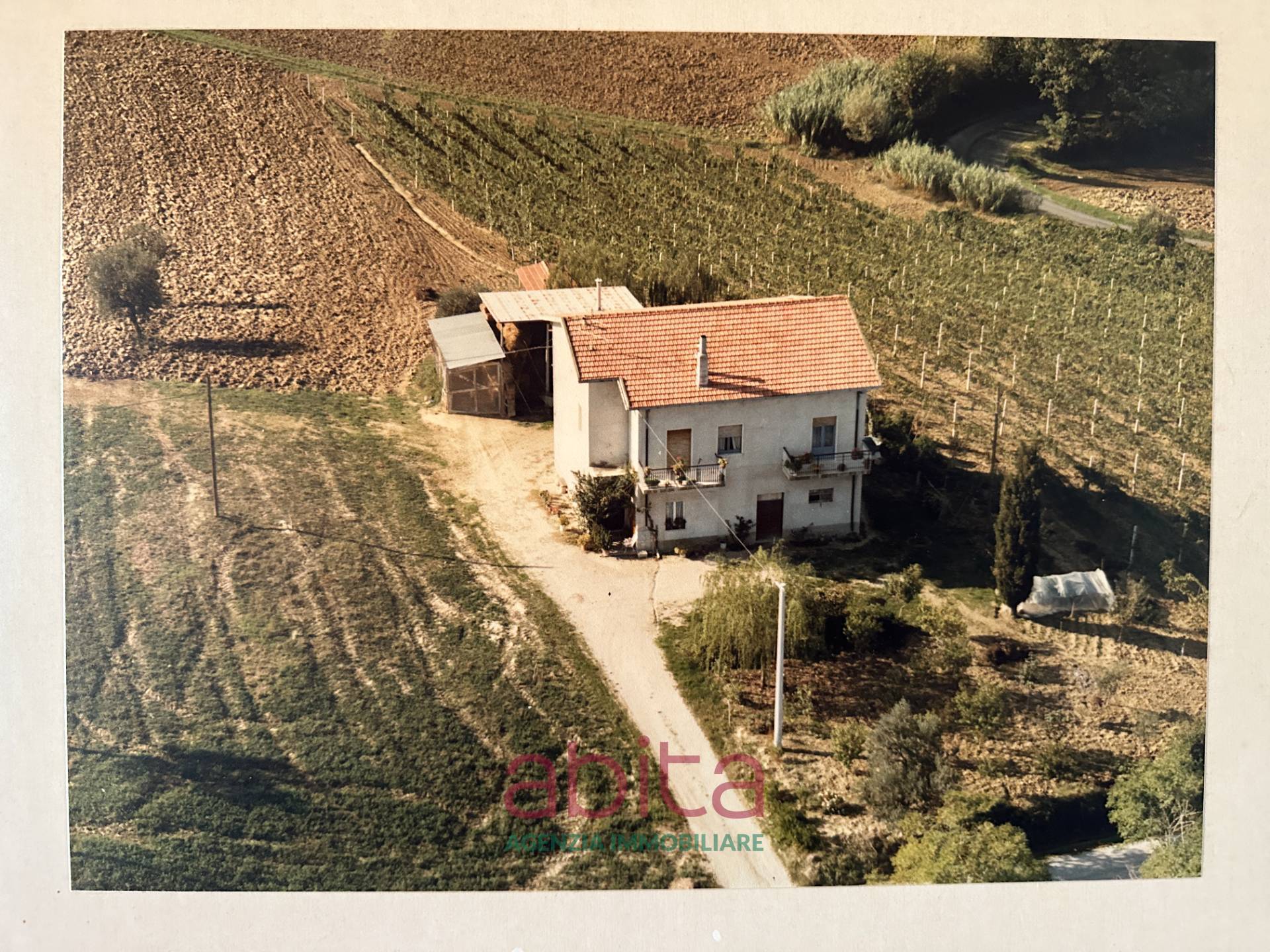 Offida Casa singola con 23000 di terreno agricolo. Accesso da strada asfaltata. La casa anni 60 ha finiture dell'epoca di costruzione. Cucina e locali cantina e garage al piano terra. Tre camere bagno e cucina soggiorno al piano primo.